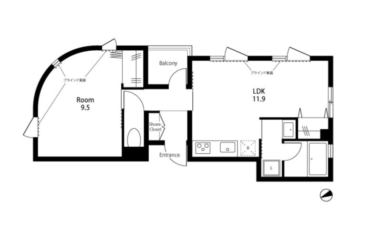 洋室は建物の外観そのままのラウンド形状となっていて、やわらかな印象を与えてくれます。