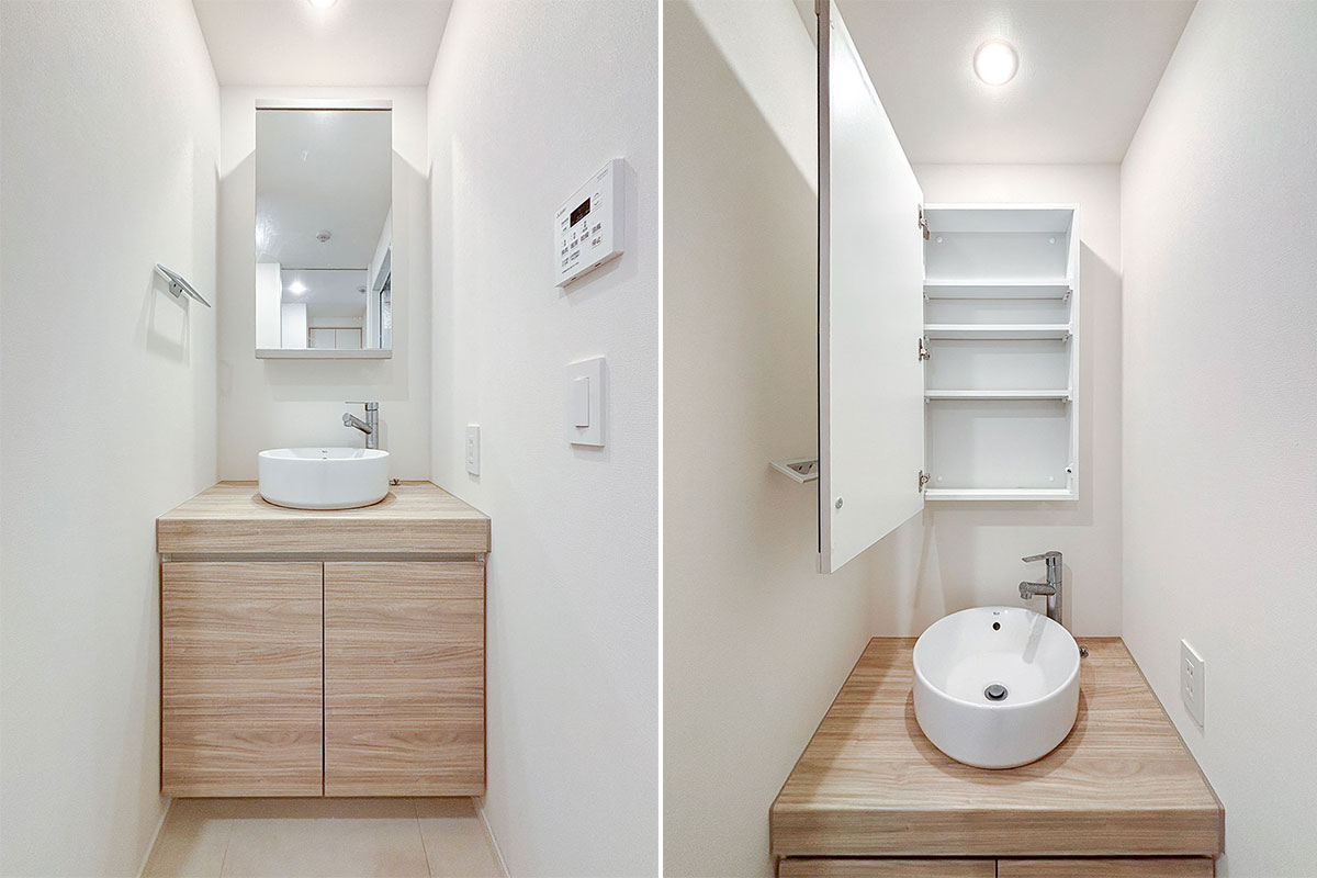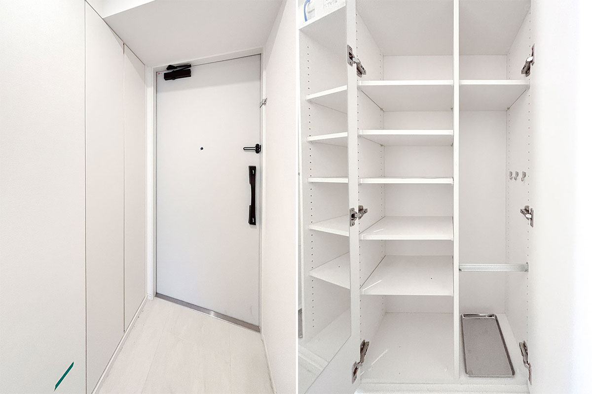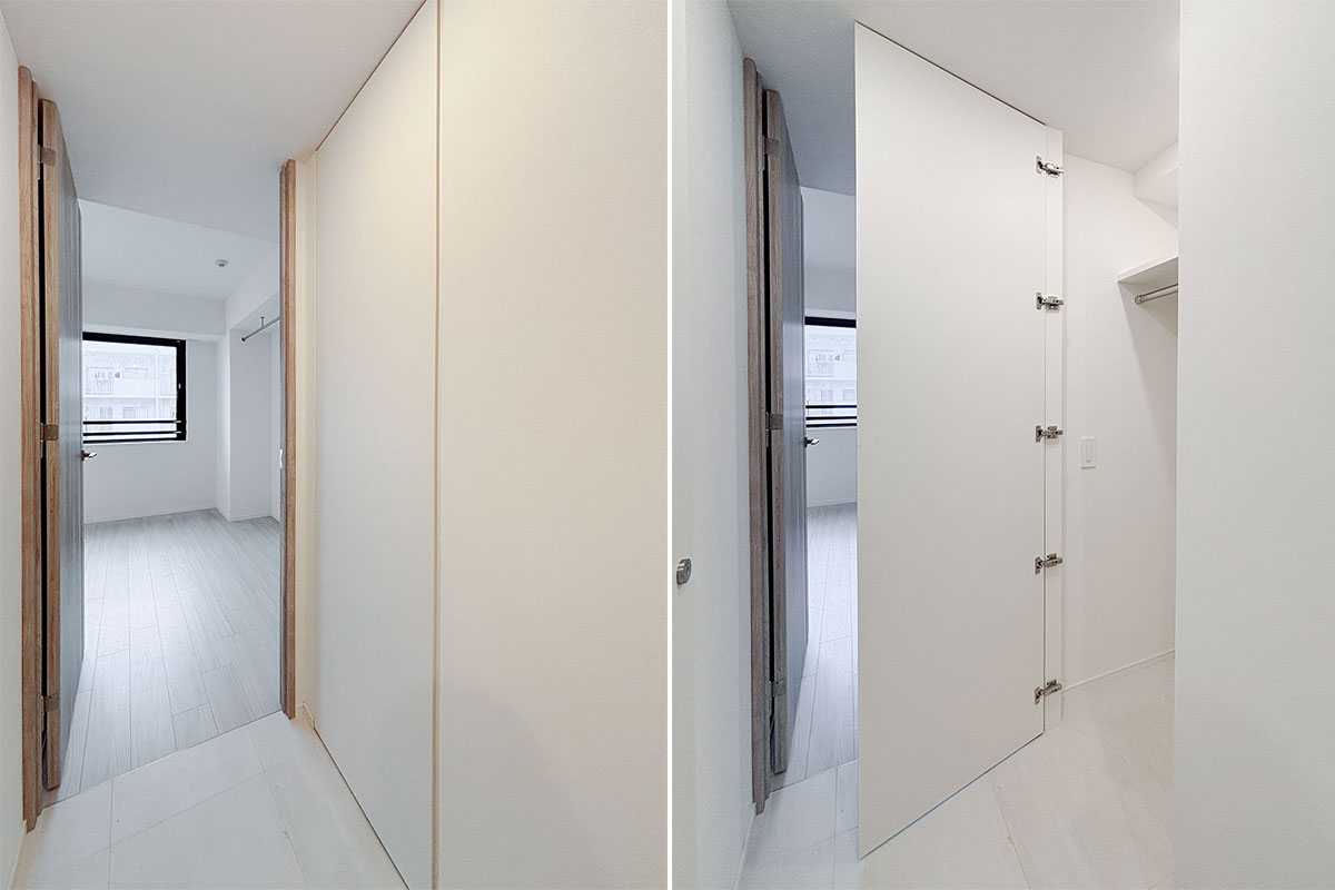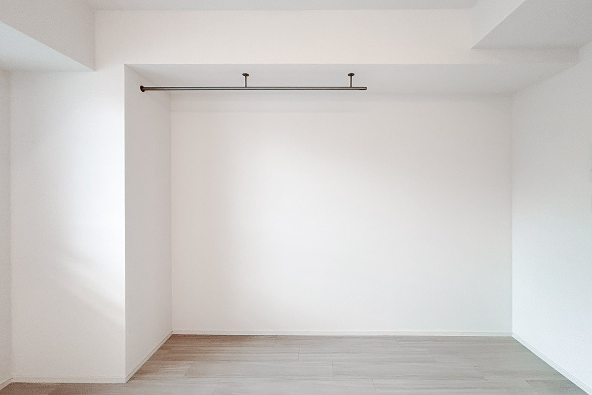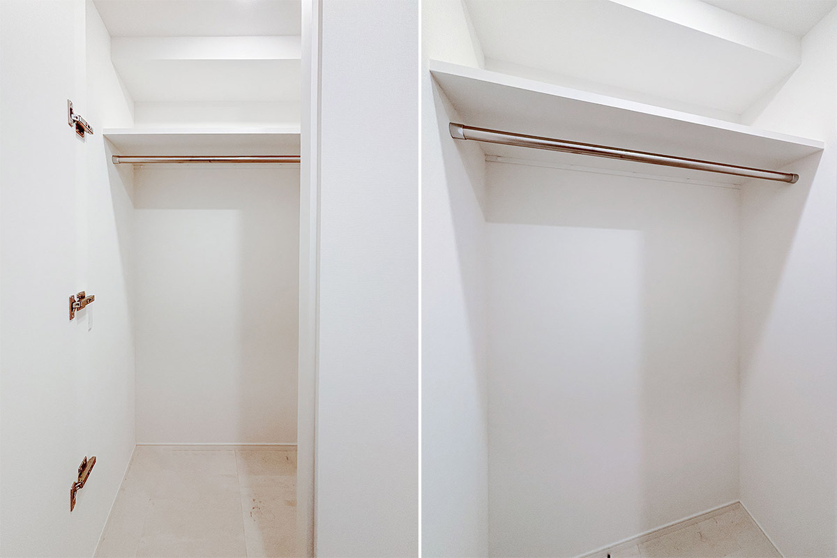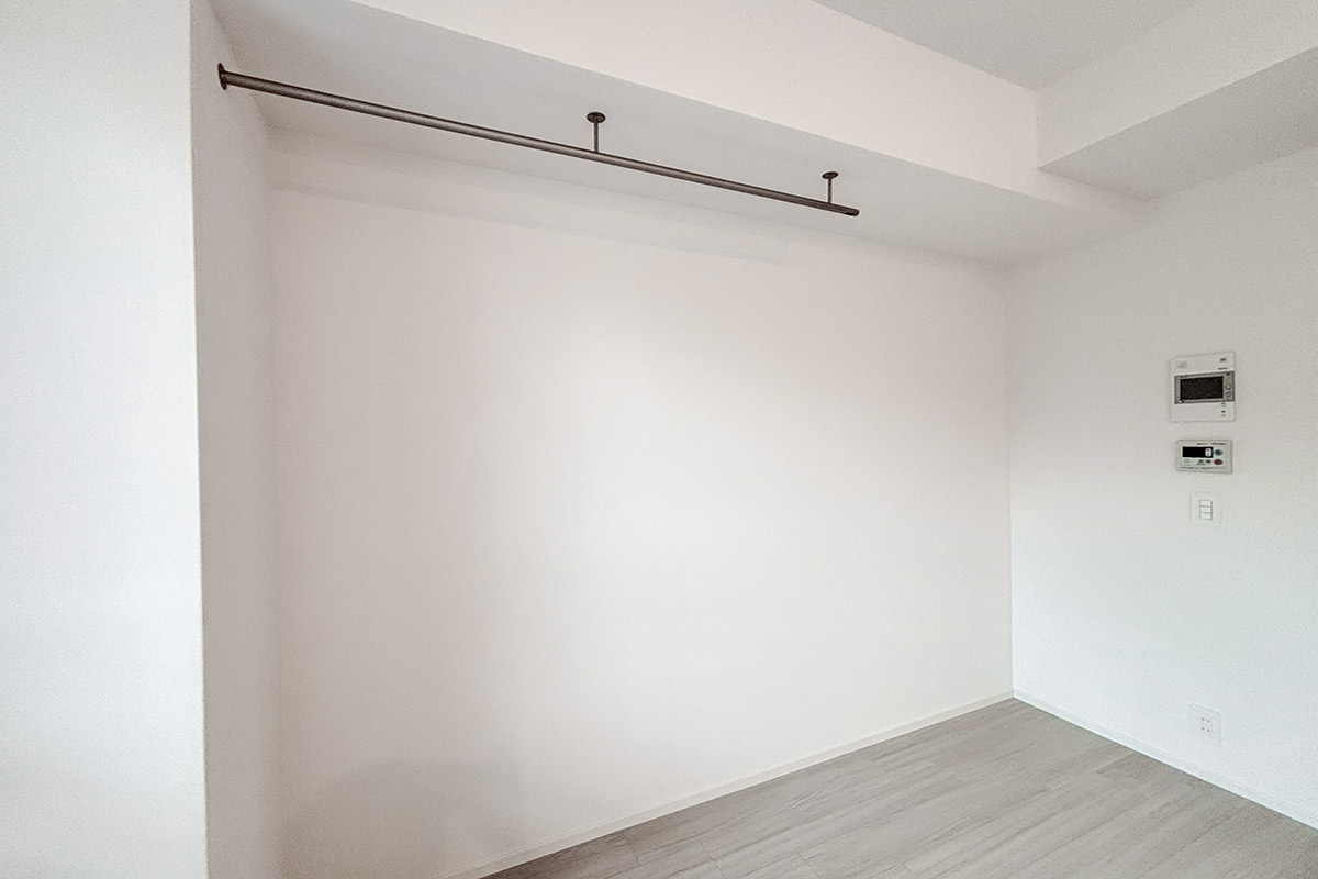 収納はオープンラックと廊下沿いにウォークインクローゼット付き。