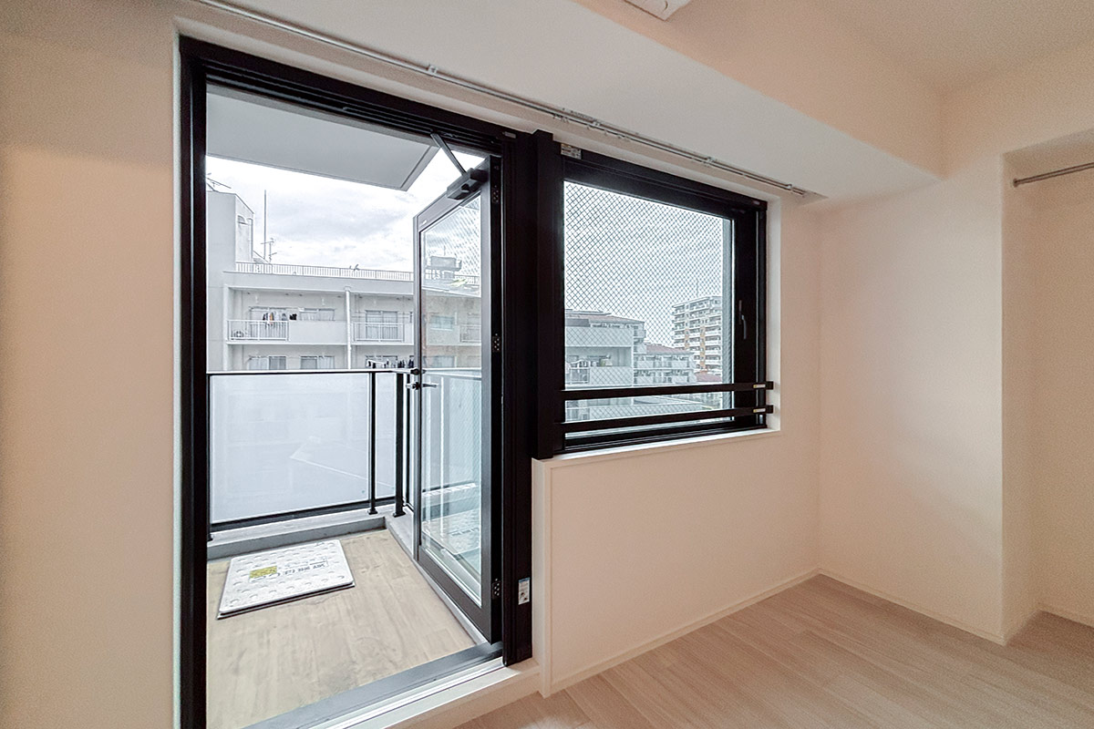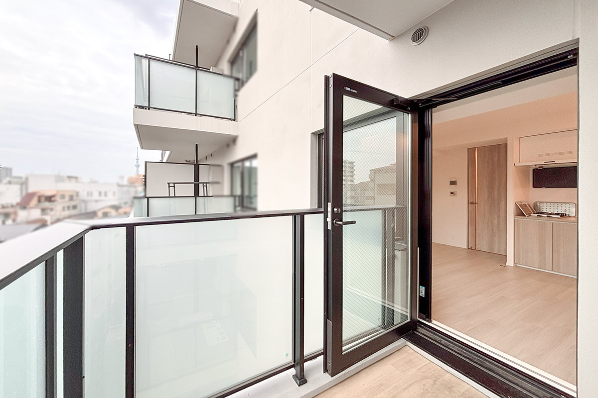前面が抜けた眺望の5階で、バルコニーも清々しい空間になっていました◎