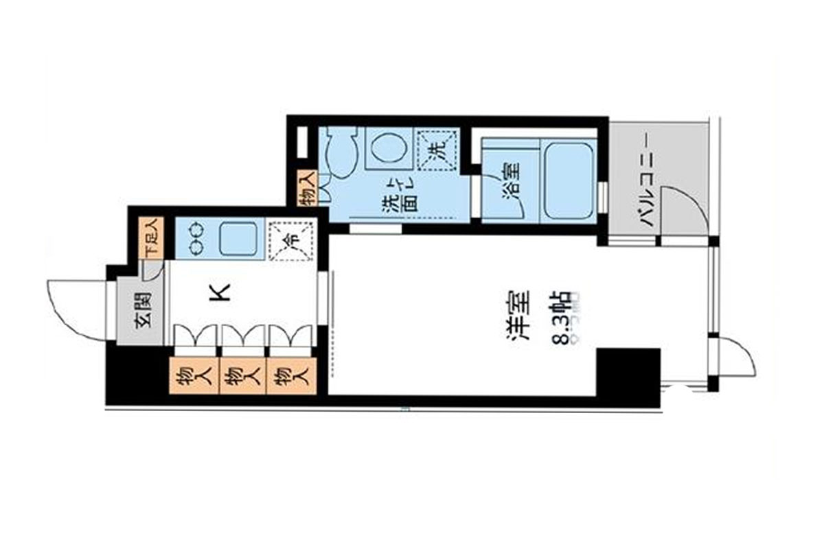 募集中のお部屋は6階、約28㎡の1Kタイプ。