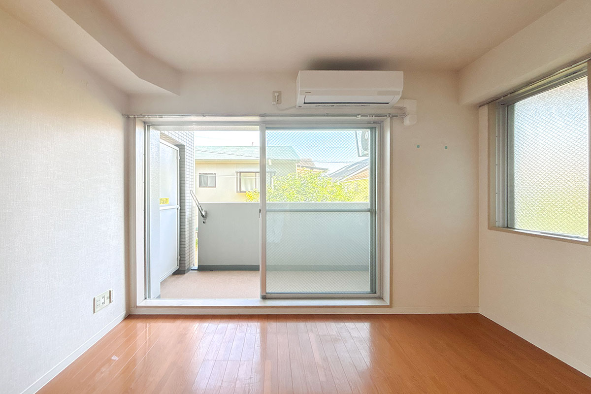 バルコニーは東向き、取材時は午前中でやわらかく光が室内に差し込んでいました。