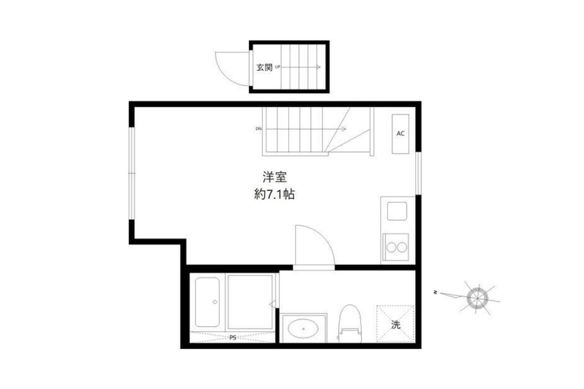 募集のは約21㎡のワンルーム、1階玄関から居室がある2階へは室内階段で向かいます。