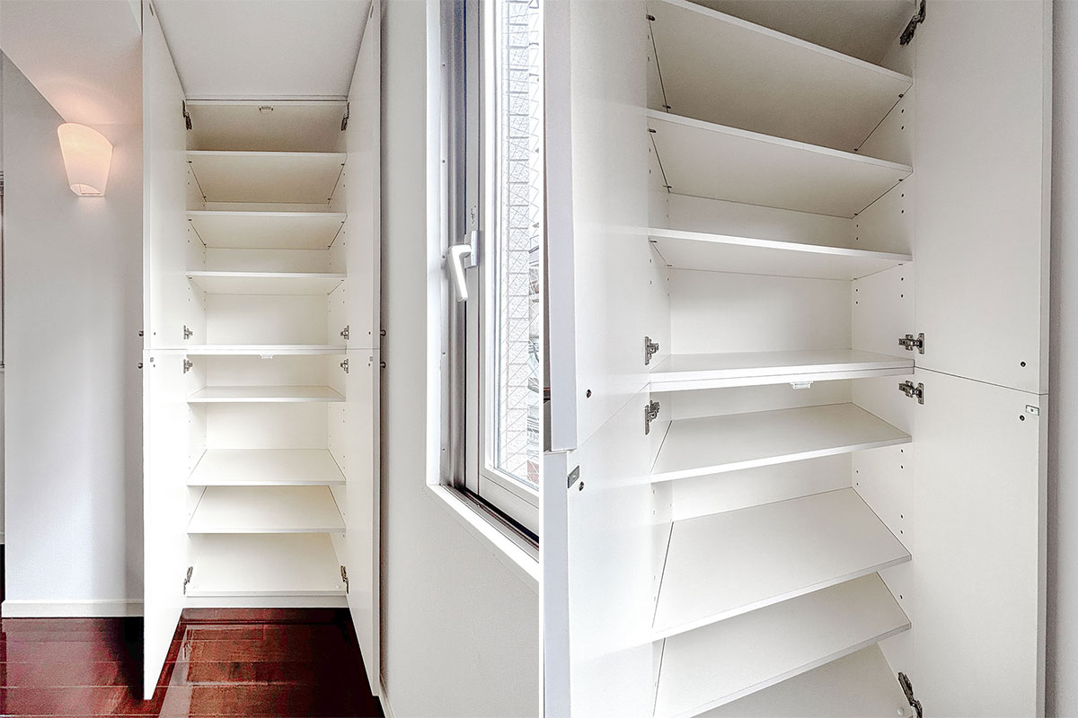 窓際の棚収納は、棚板の高さを変えてブックシェルフとしても重宝しそう!