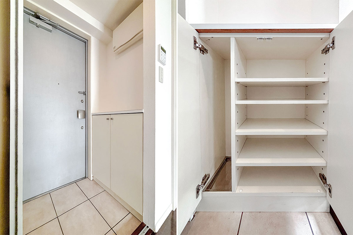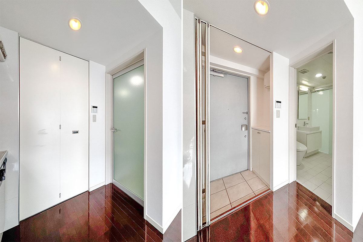 玄関部分には仕切り扉が付いていて、外気の侵入を和らげてくれる効果も!