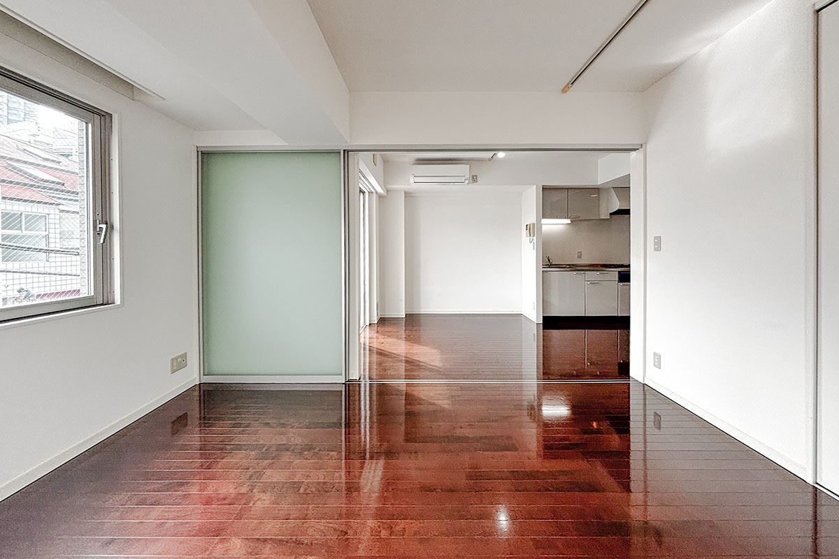 来客時にはスライドドアで目隠しをして、普段はワンルームのような使い方もできそうです。