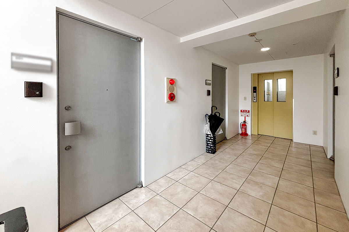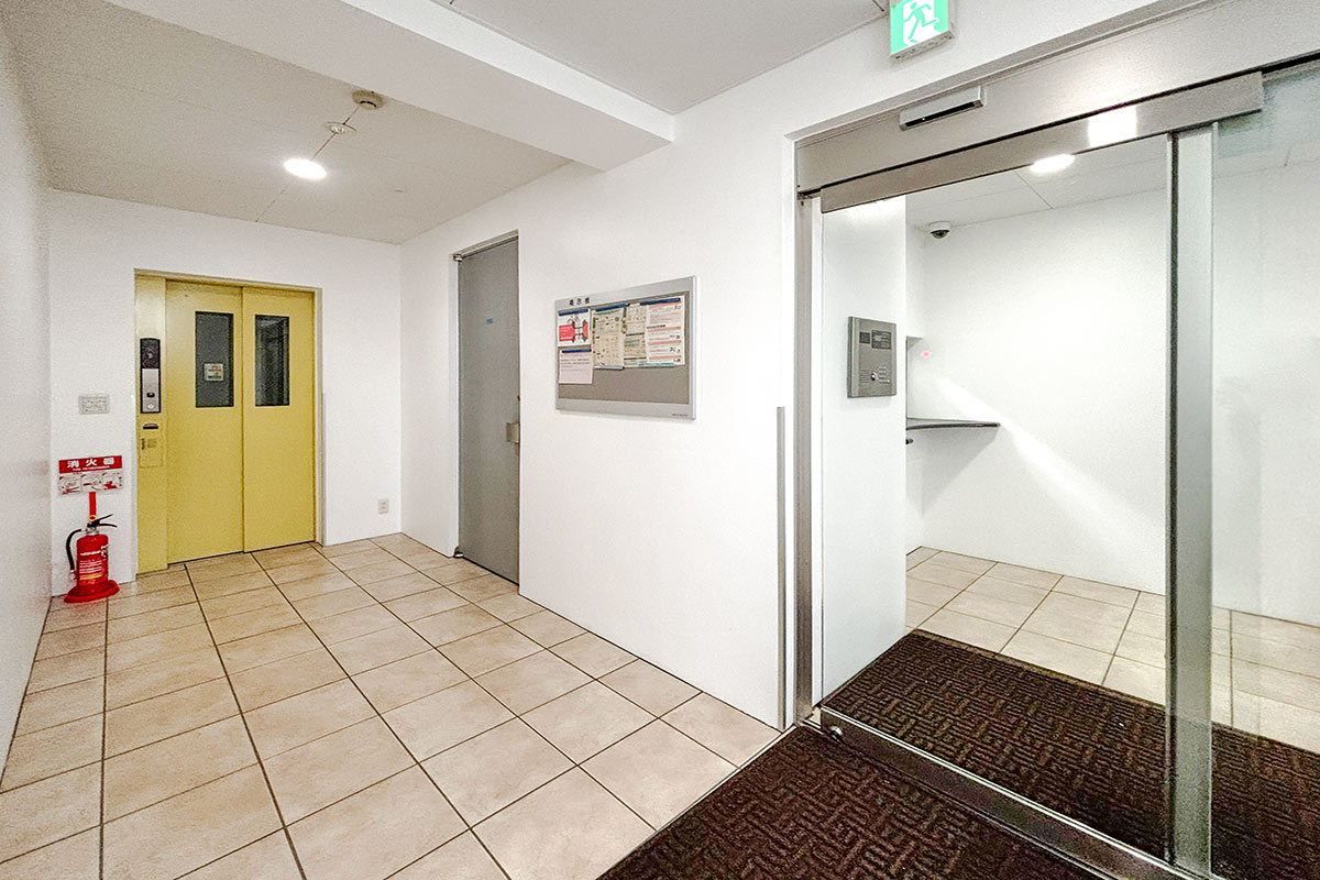 通り沿いの1階部分にはクリニックなどのテナントも入居していますが、居住者用エントランスは通りから一本入った位置にあります。