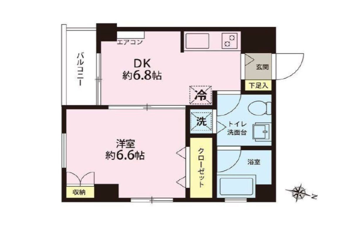 お部屋は3階角部屋、約33㎡の1LDK。