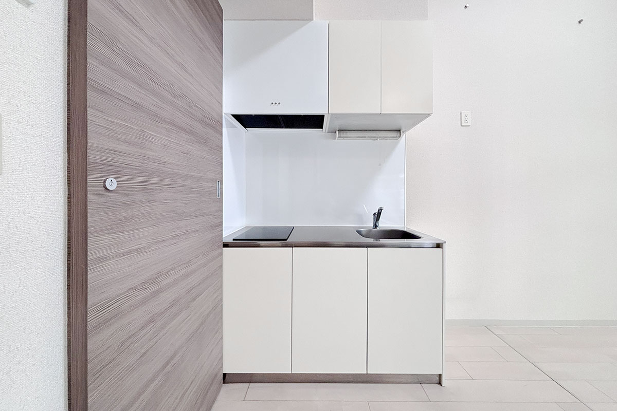 水回りはミニキッチンにシャワールームとミニマルな仕様。
