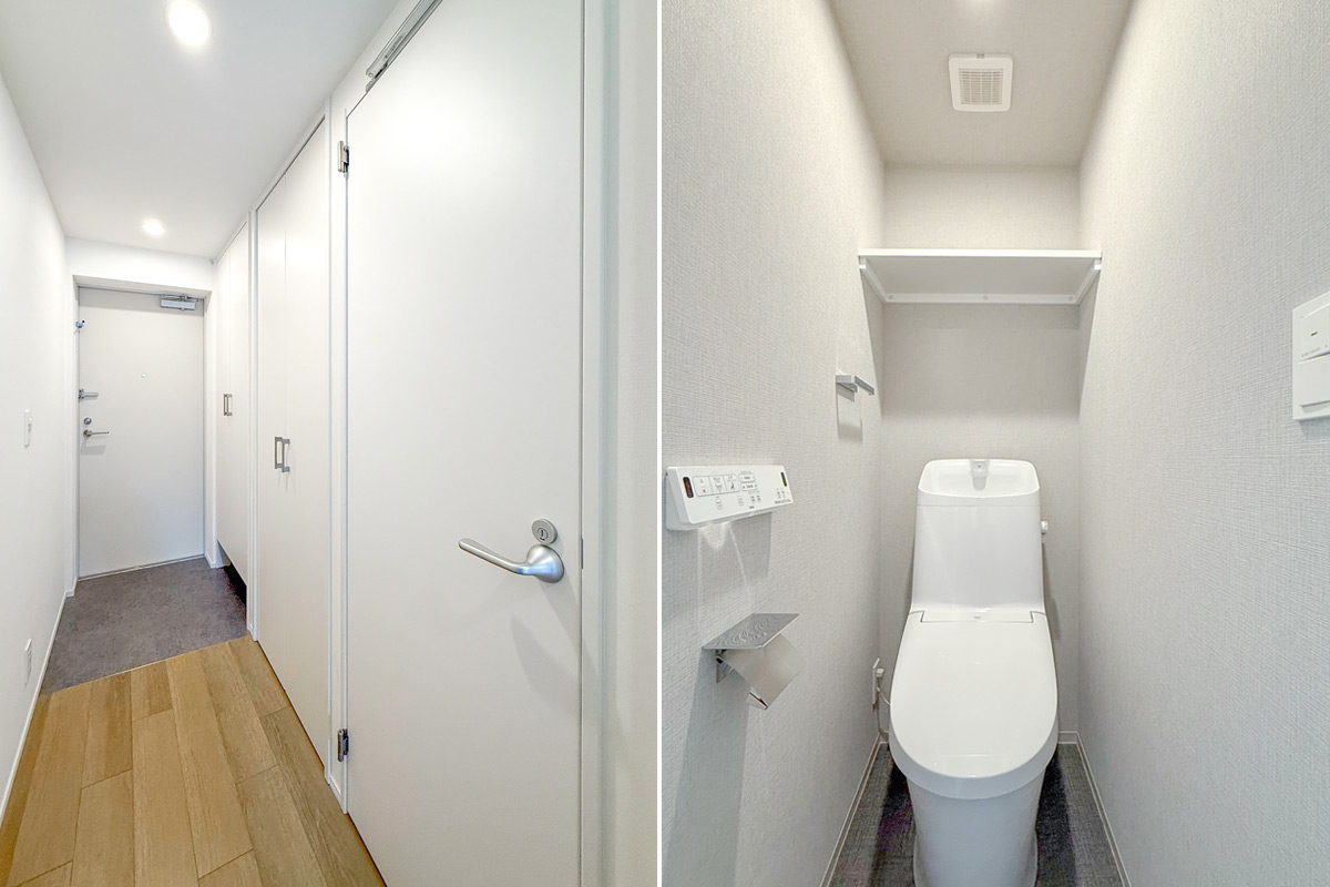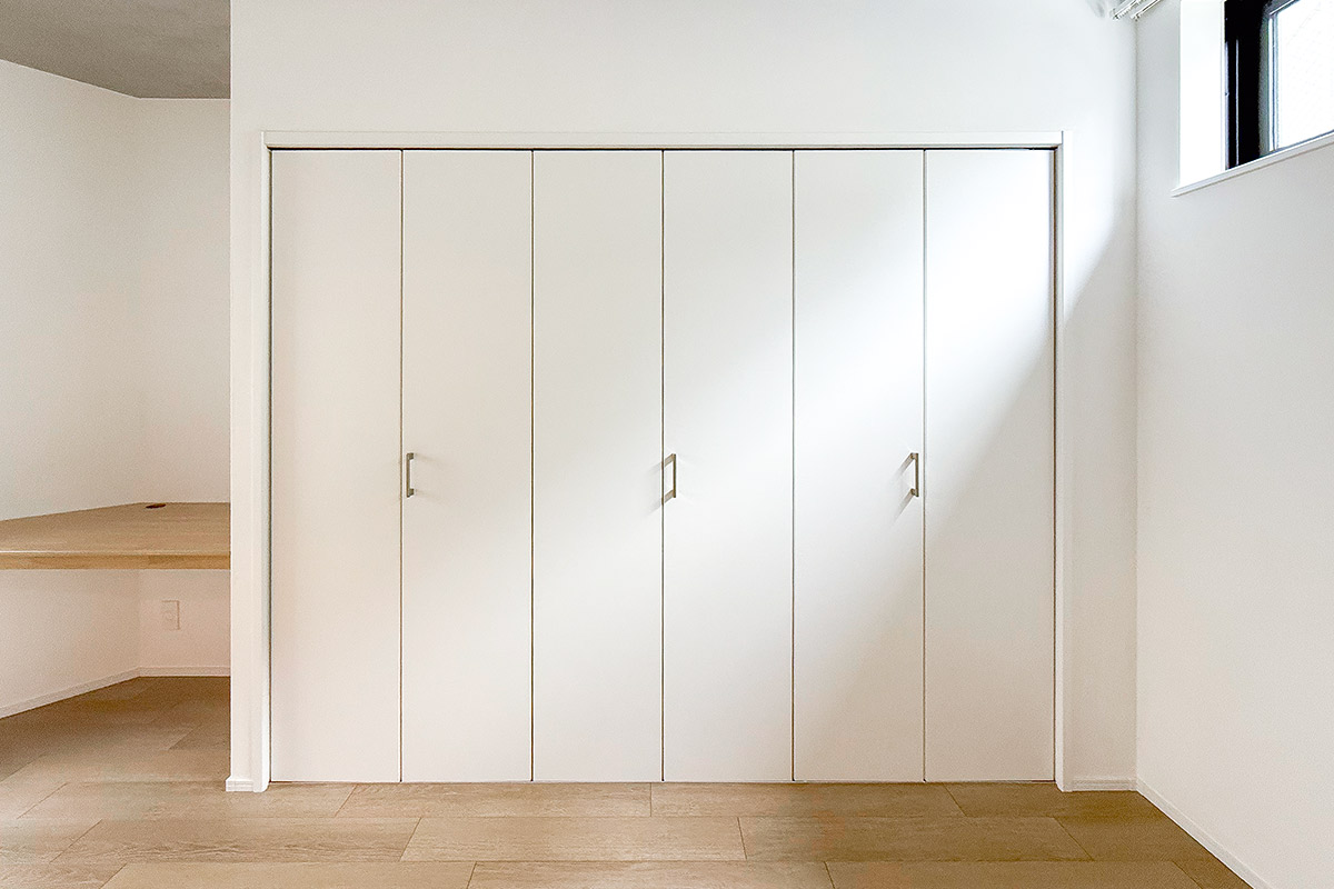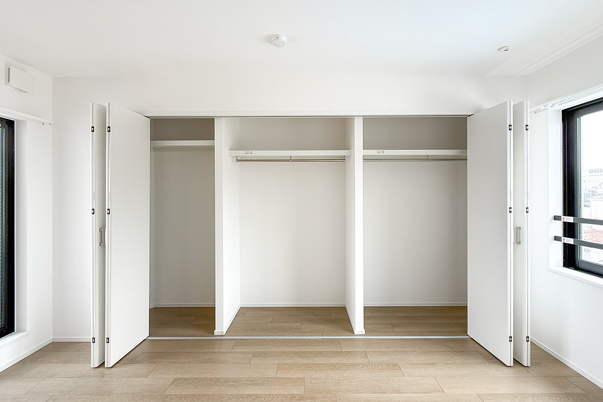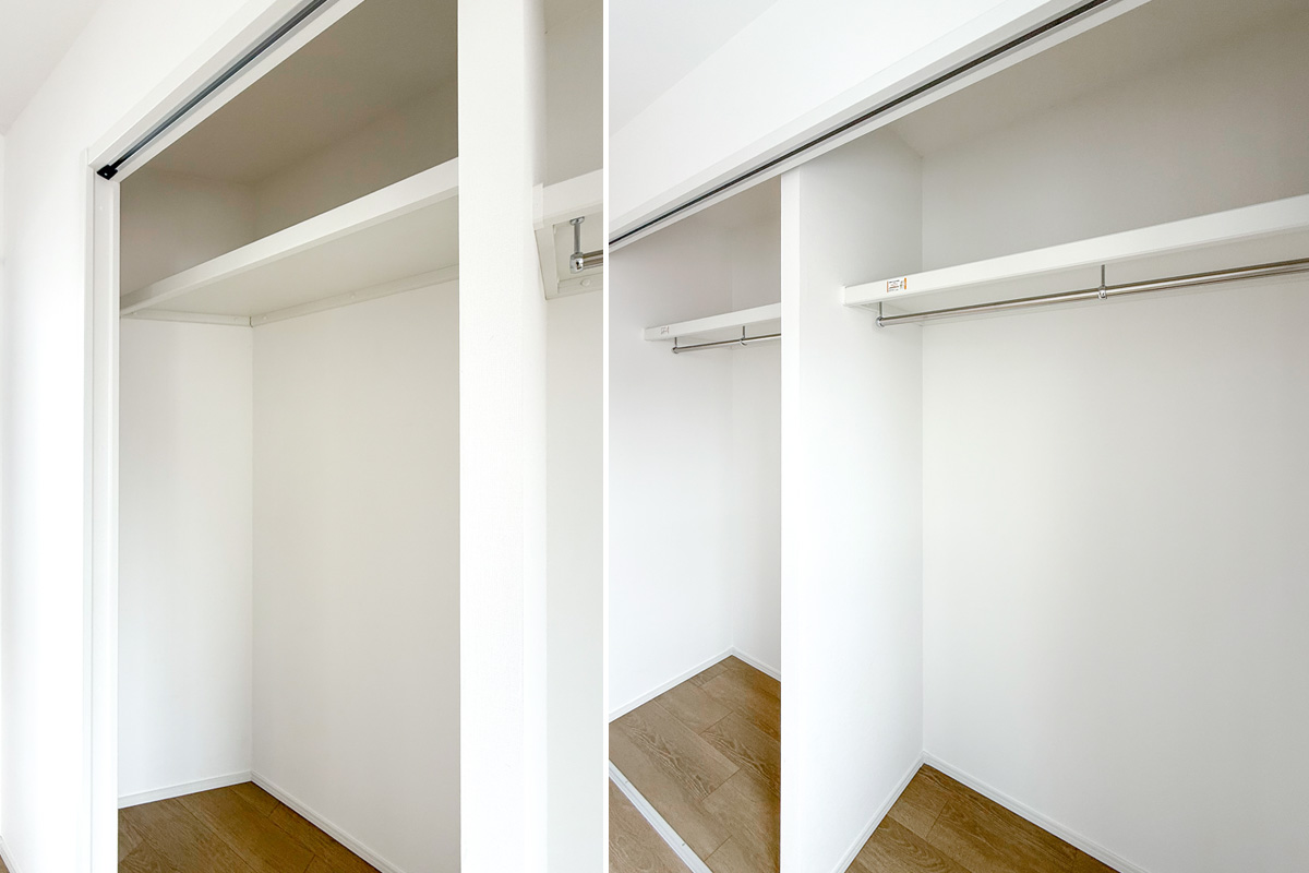 また2階以上のお部屋には造作デスクのスペースの代わりにクローゼットがさらに横に並び頼もしい収納力◎(写真65枚目)