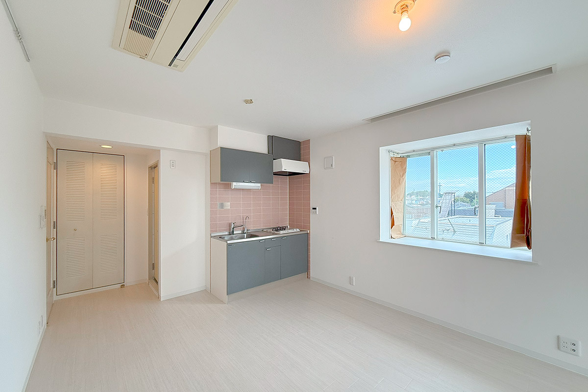 募集中のお部屋は最上階角部屋、約30㎡のシンプルな1LDKタイプ。