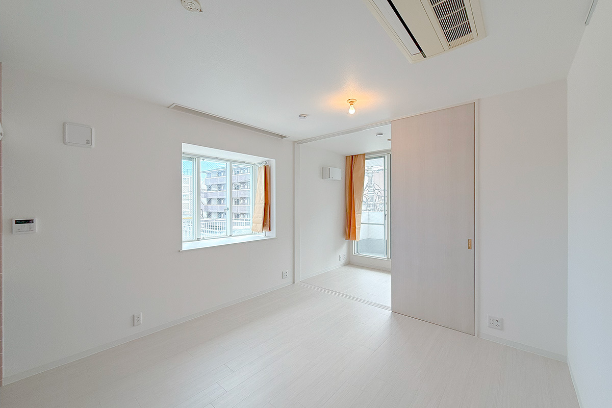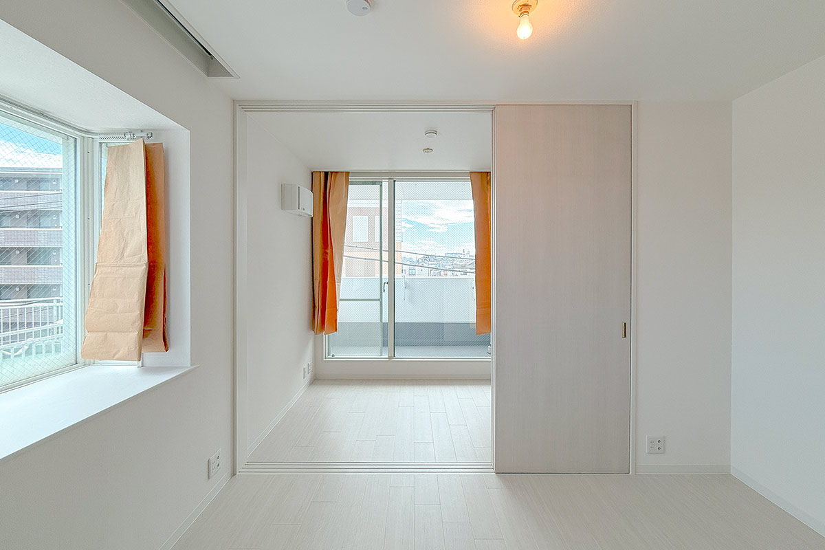 リビングと寝室を隔てる引き戸を開けたままに、ワンルームのような使い方が現実的かもしれません。