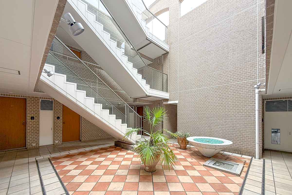 館内は西洋の雰囲気漂う吹き抜け空間に、3階共用部分には広いテラスもあり居住者や来客者がくつろげる憩いの場に。