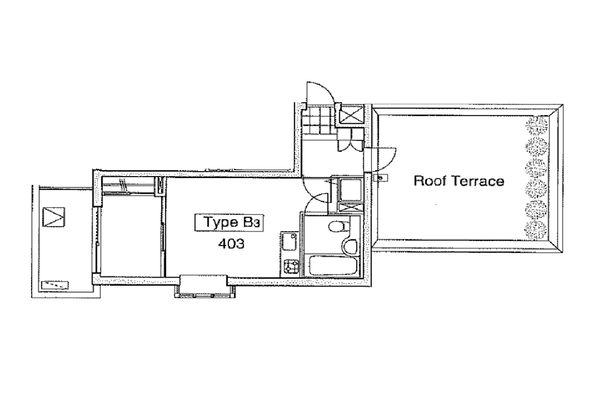 館内共用部分にテラスがありますが、こちらのお部屋にも専用のルーフテラス付き!!