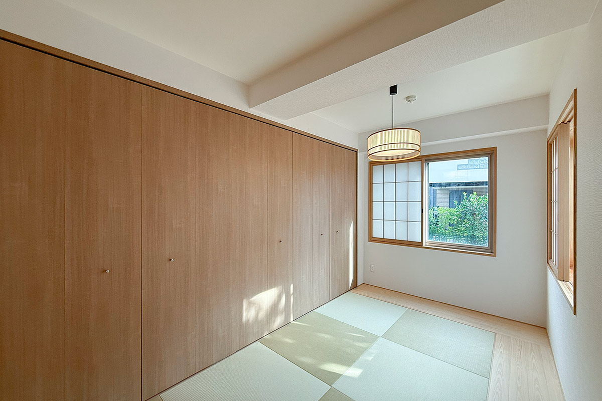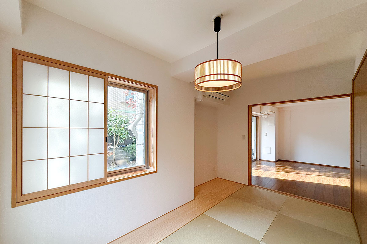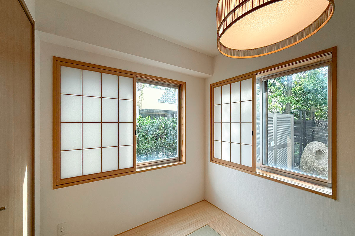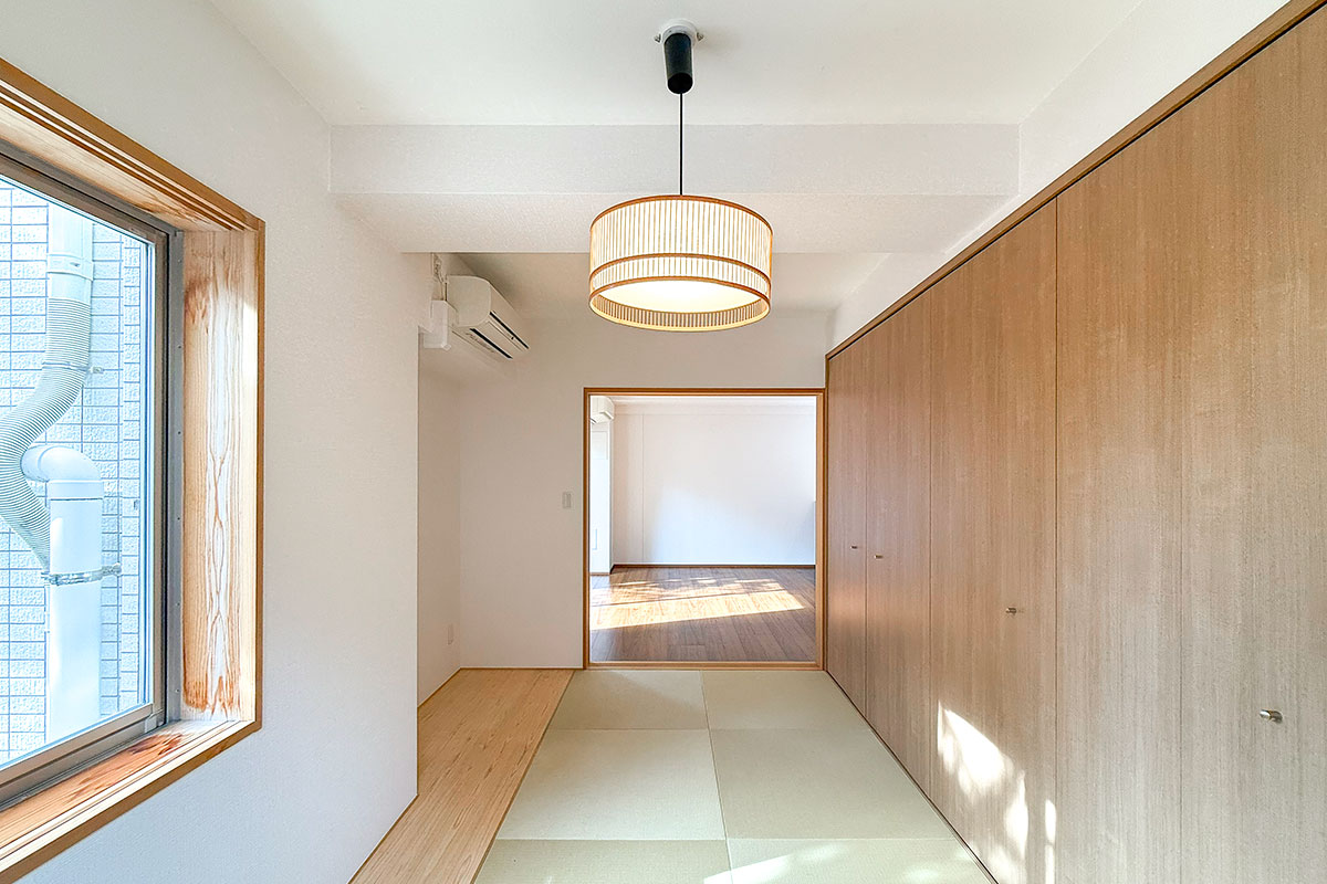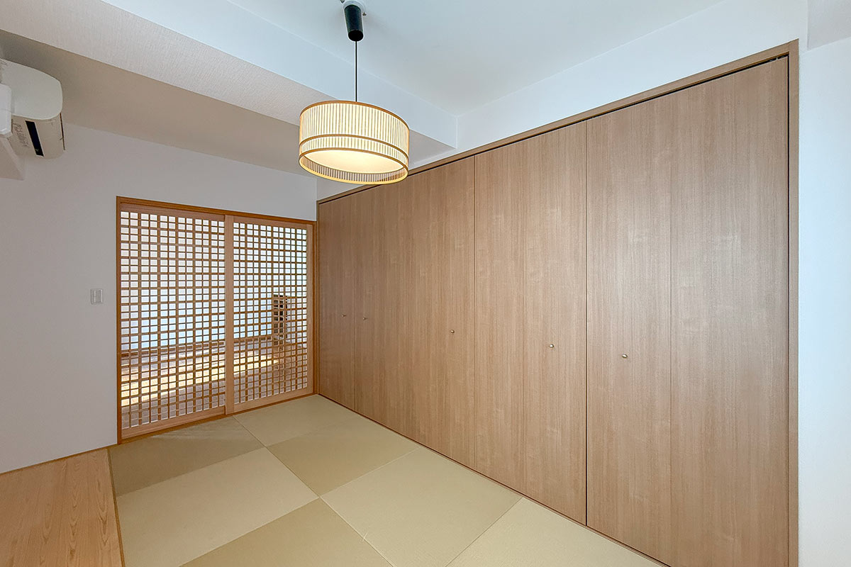 リビングのお隣のお部屋はなんとも味わい深い、琉球畳と障子のある和室スペース。