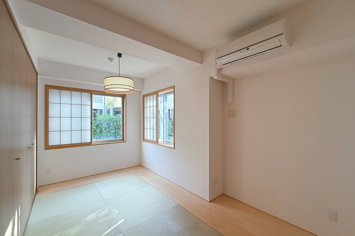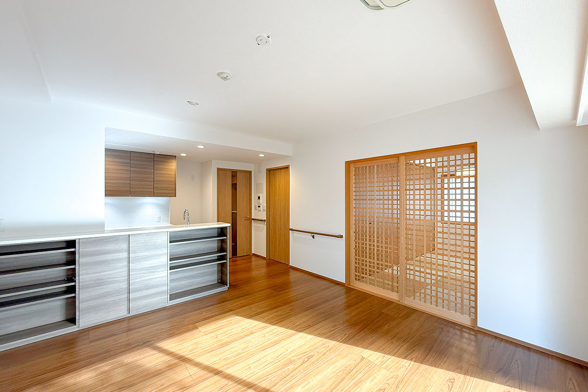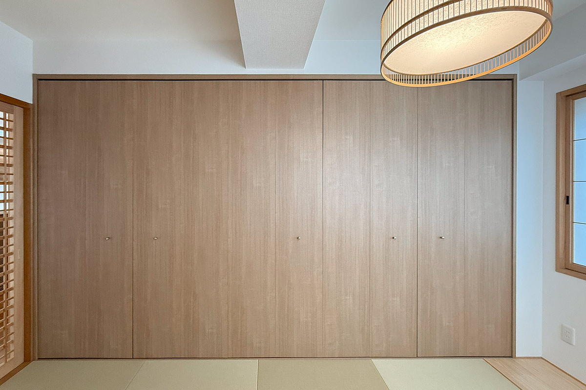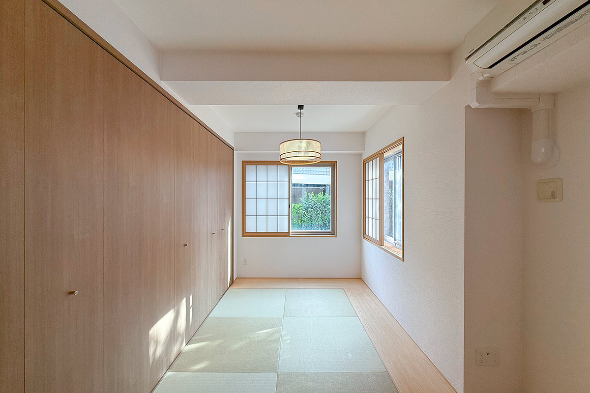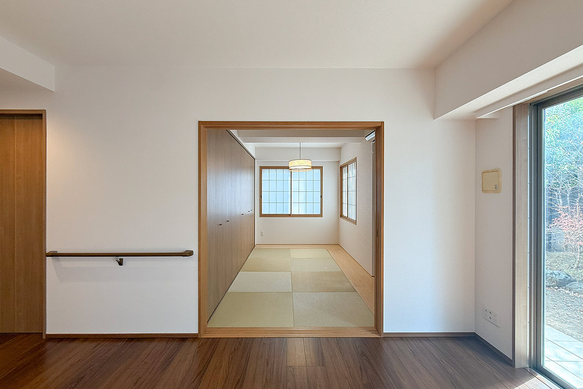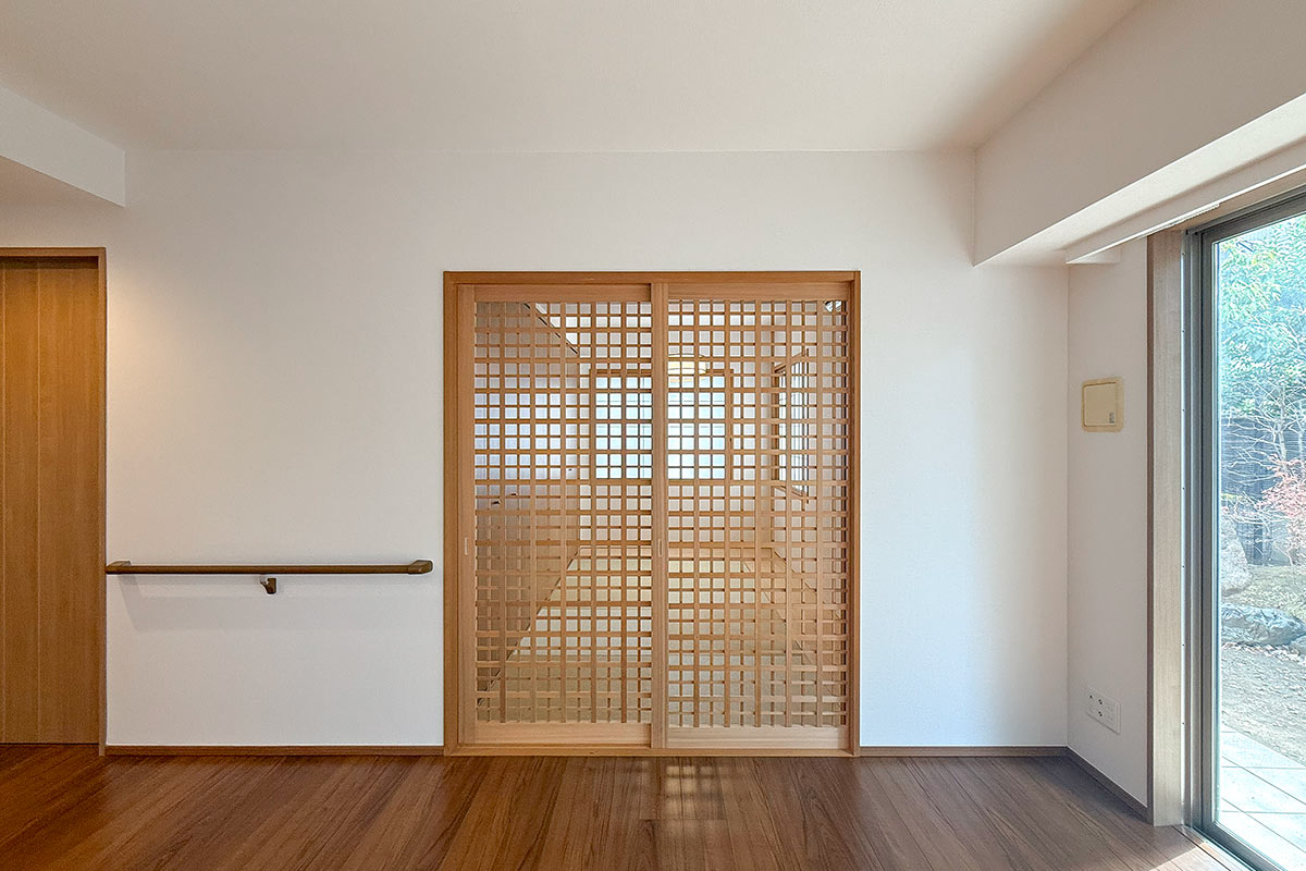 リビングのお隣のお部屋はなんとも味わい深い、琉球畳と障子のある和室スペース。