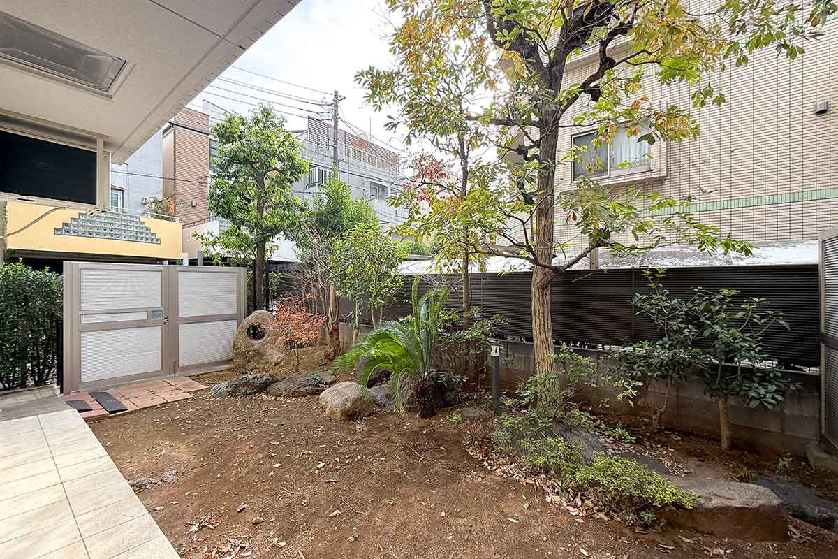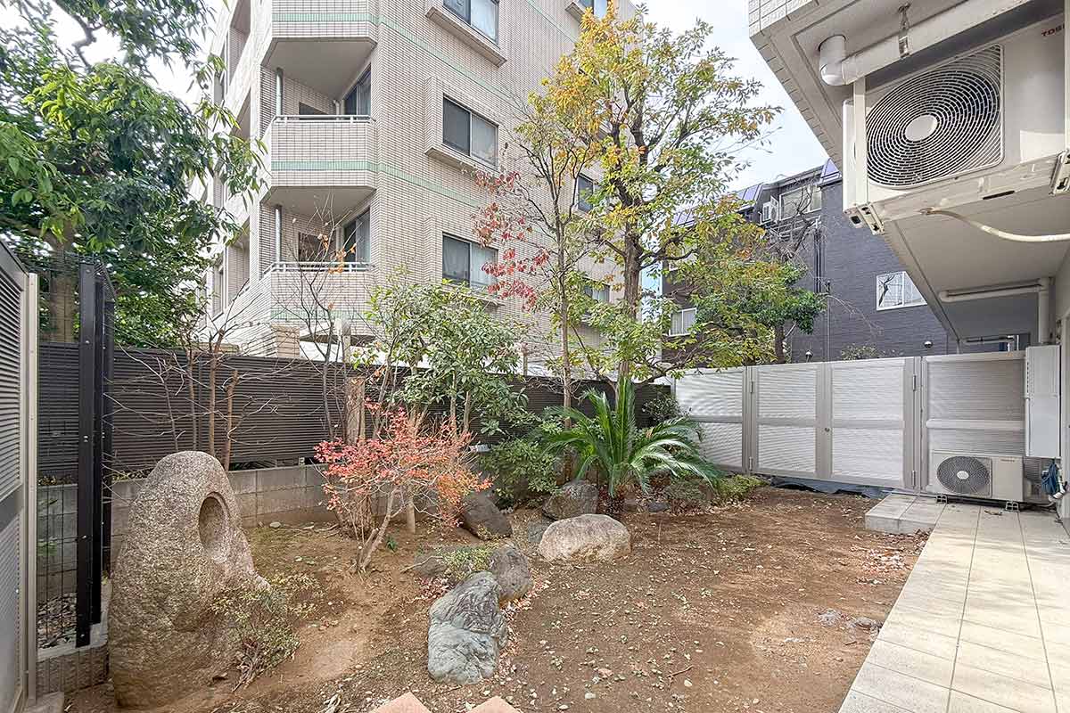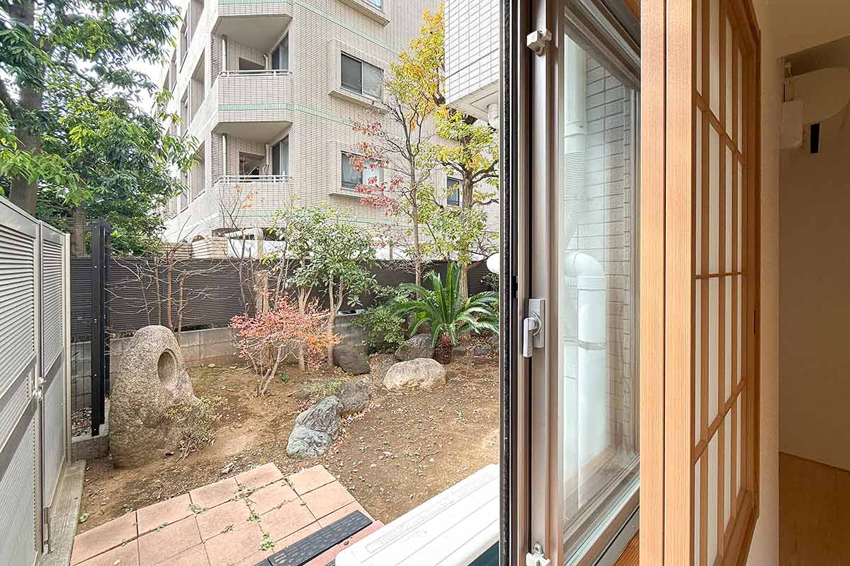 お庭には木々や石がほど良く置かれ、和の趣きのある情景が広がります。