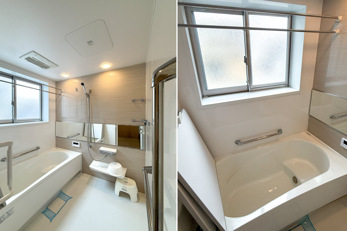 バスルームもファミリーサイズで、浴槽は足を伸ばせるほどのゆとり◎