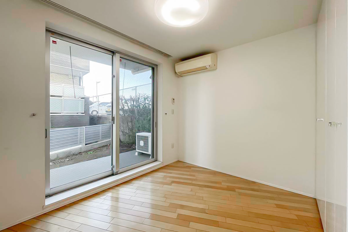 エアコン、B.T別室、モニター付ドアホン、独立洗面化粧台、室内洗濯機置場、専用庭、都市ガス、温水洗浄便座、追焚機能、浴室乾燥機、システムキッチン、IHクッキングヒーター、収納スペース、オートロック、宅配ボックス、敷地内ごみ置場、防犯カメラ、デザイナーズ、角部屋、駐輪場