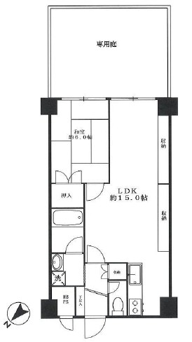室内は、リビングダイニング側の壁一面には、収納棚があり、新しく棚を置かなくても充分良さそうです。