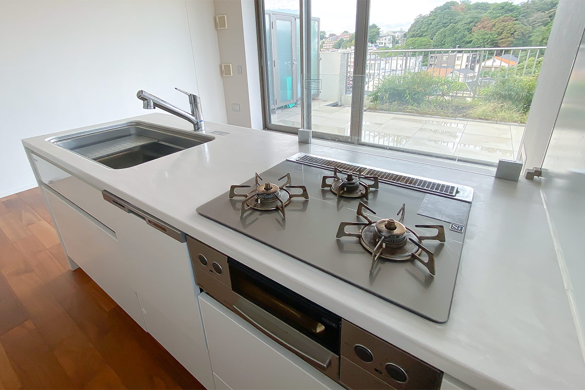 グリル付き3口ガスコンロ、ディスポーザー、食洗機付きとお料理好きな方に嬉しい機能が盛り沢山。