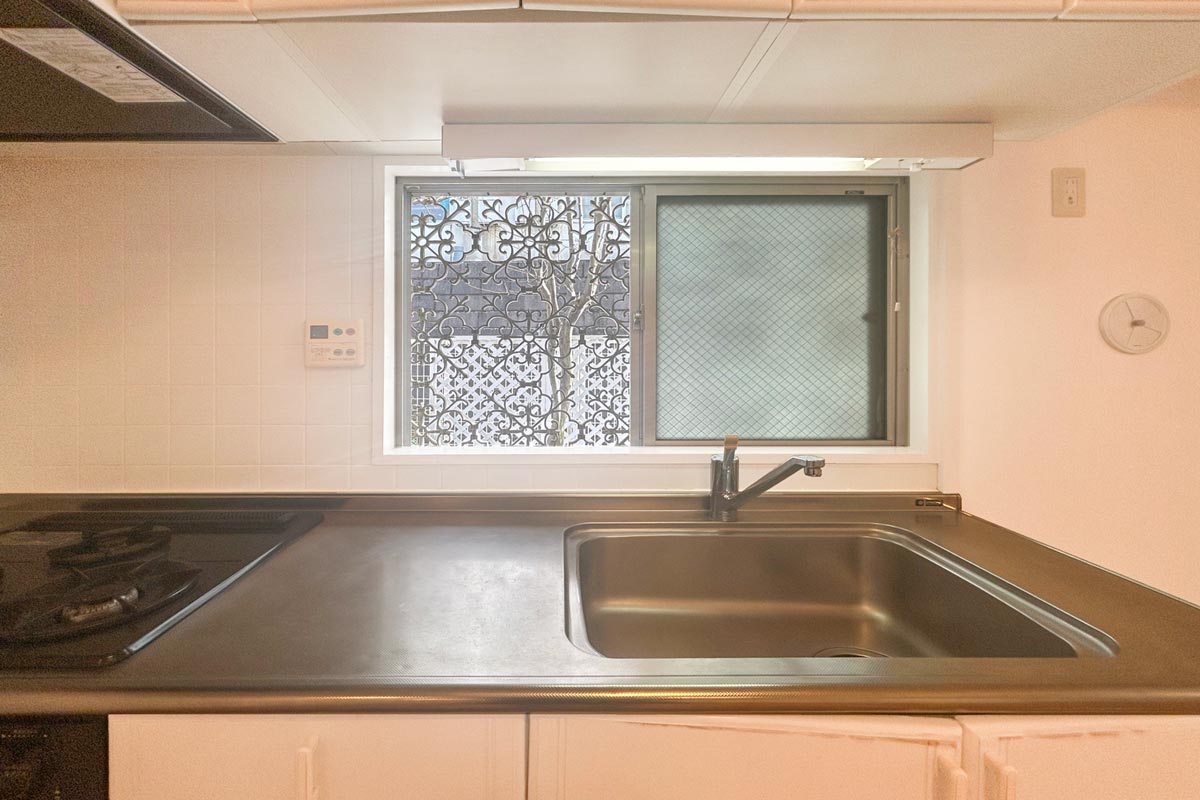 キッチンはシンプルな造りでレトロですが、床下収納もあるので収納には困りません。