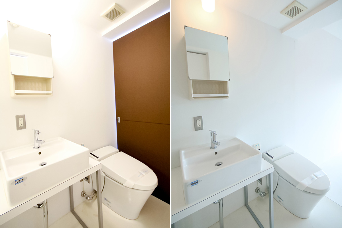 ちなみに扉を開けた状態でトイレやバスルームを使用したとしても、外から見える心配はありません。