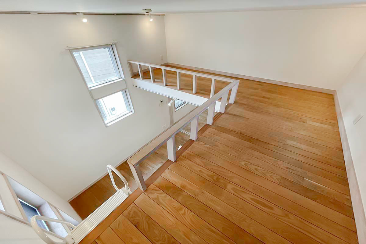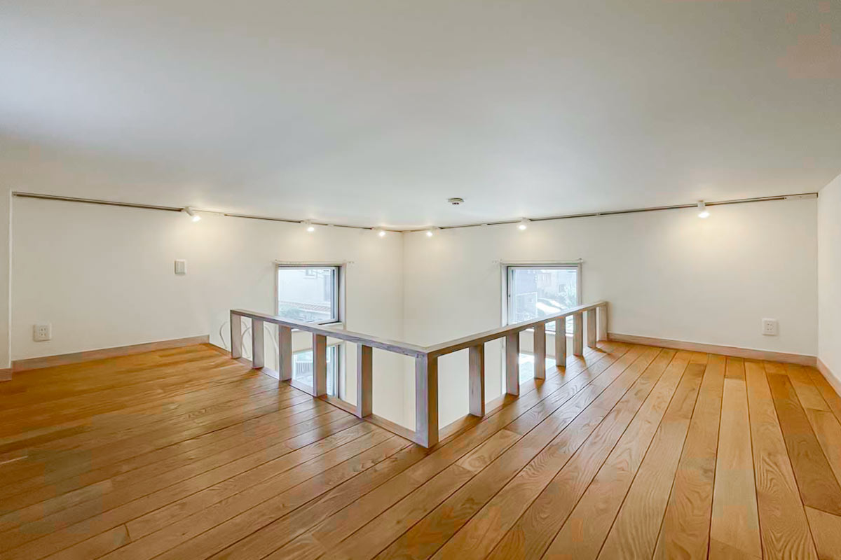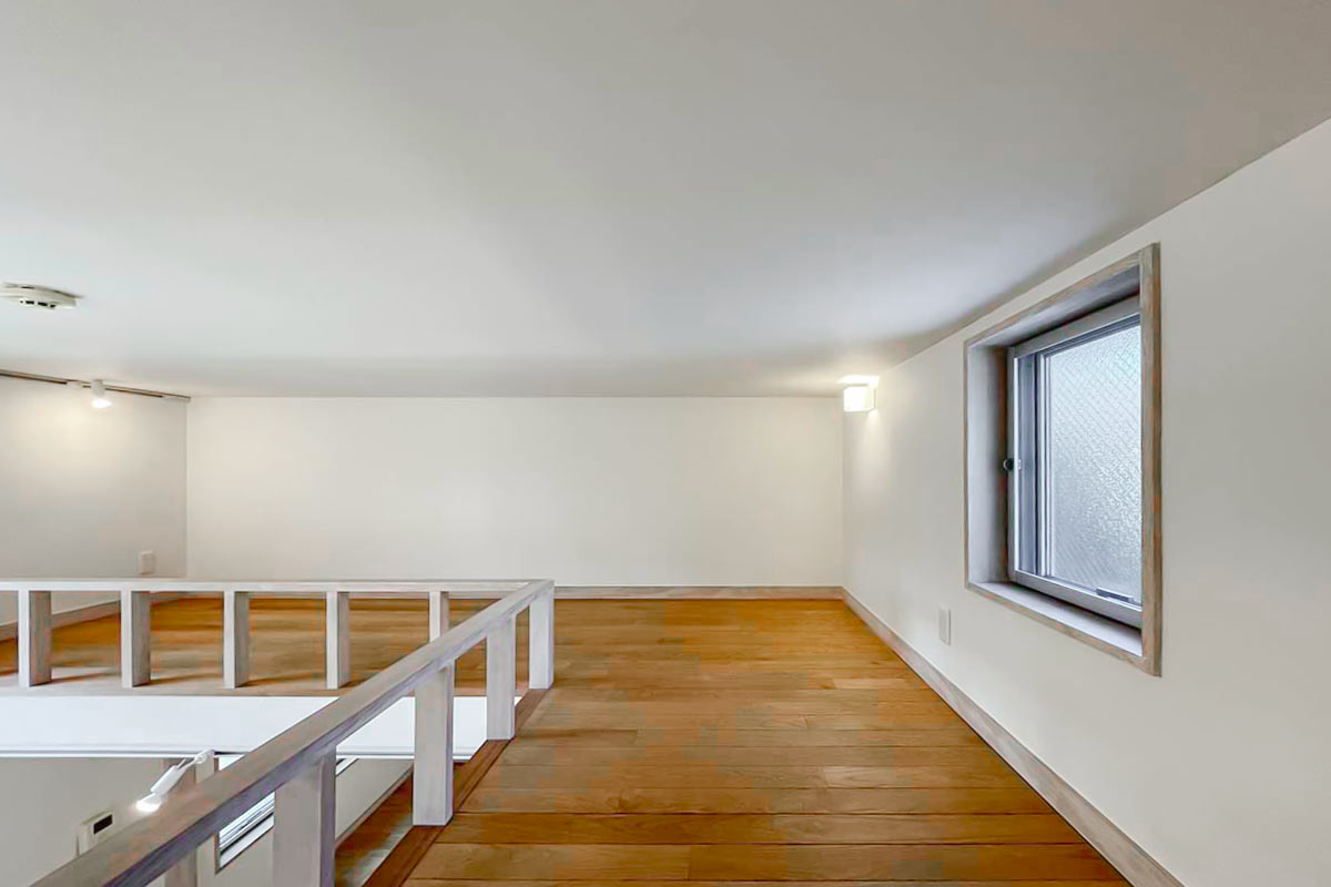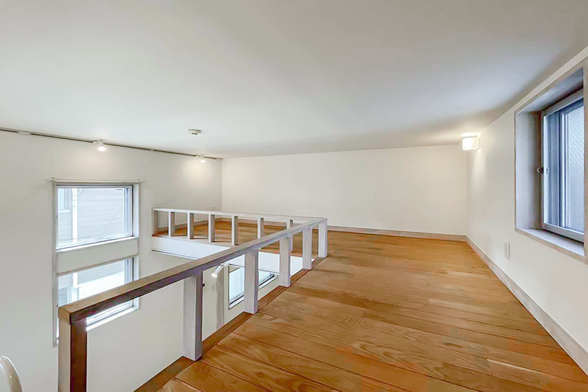 ロフトは4.3帖。天井高は約100cmほどですが、吹き抜けがすぐ横なので圧迫感を感じないロフトです。