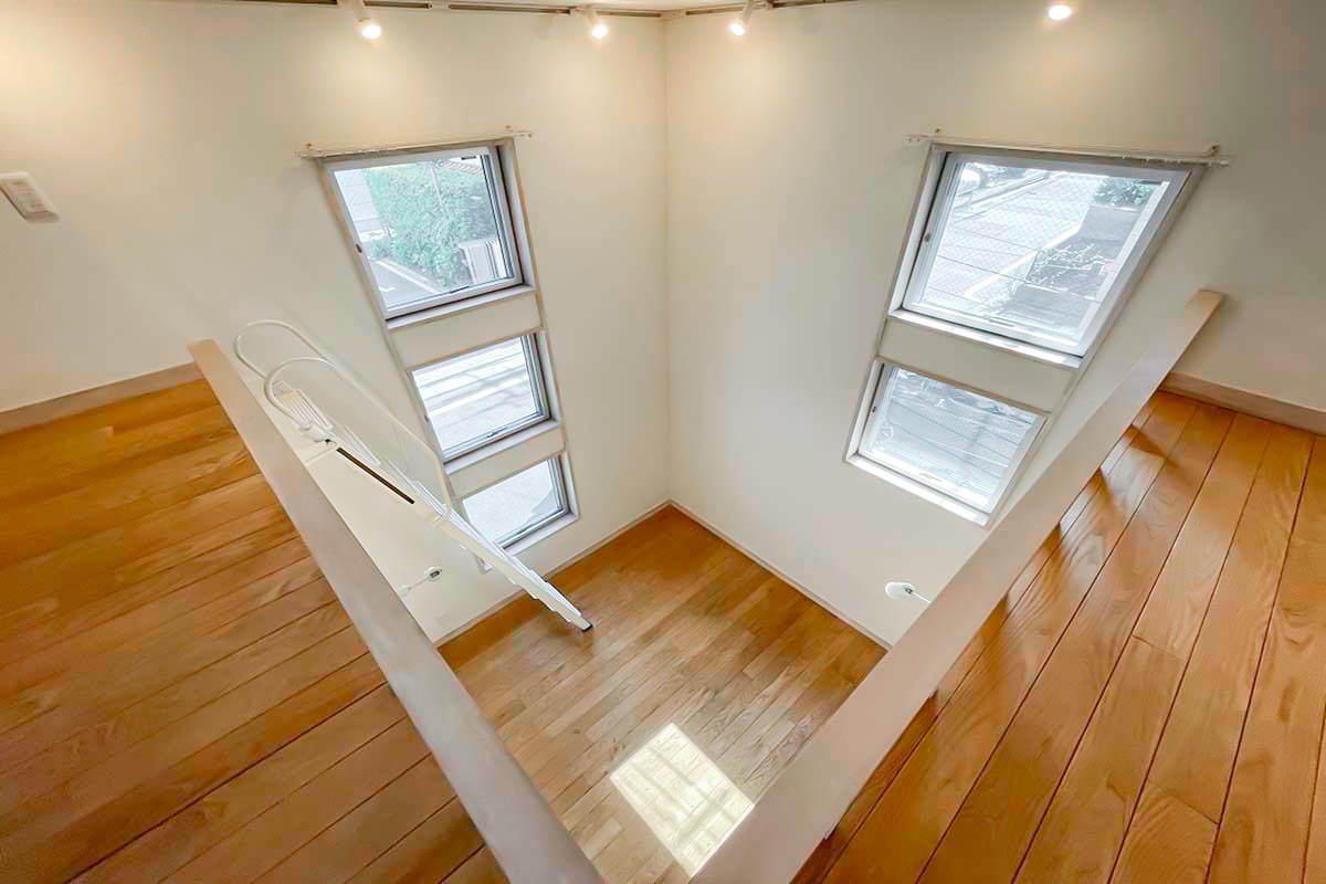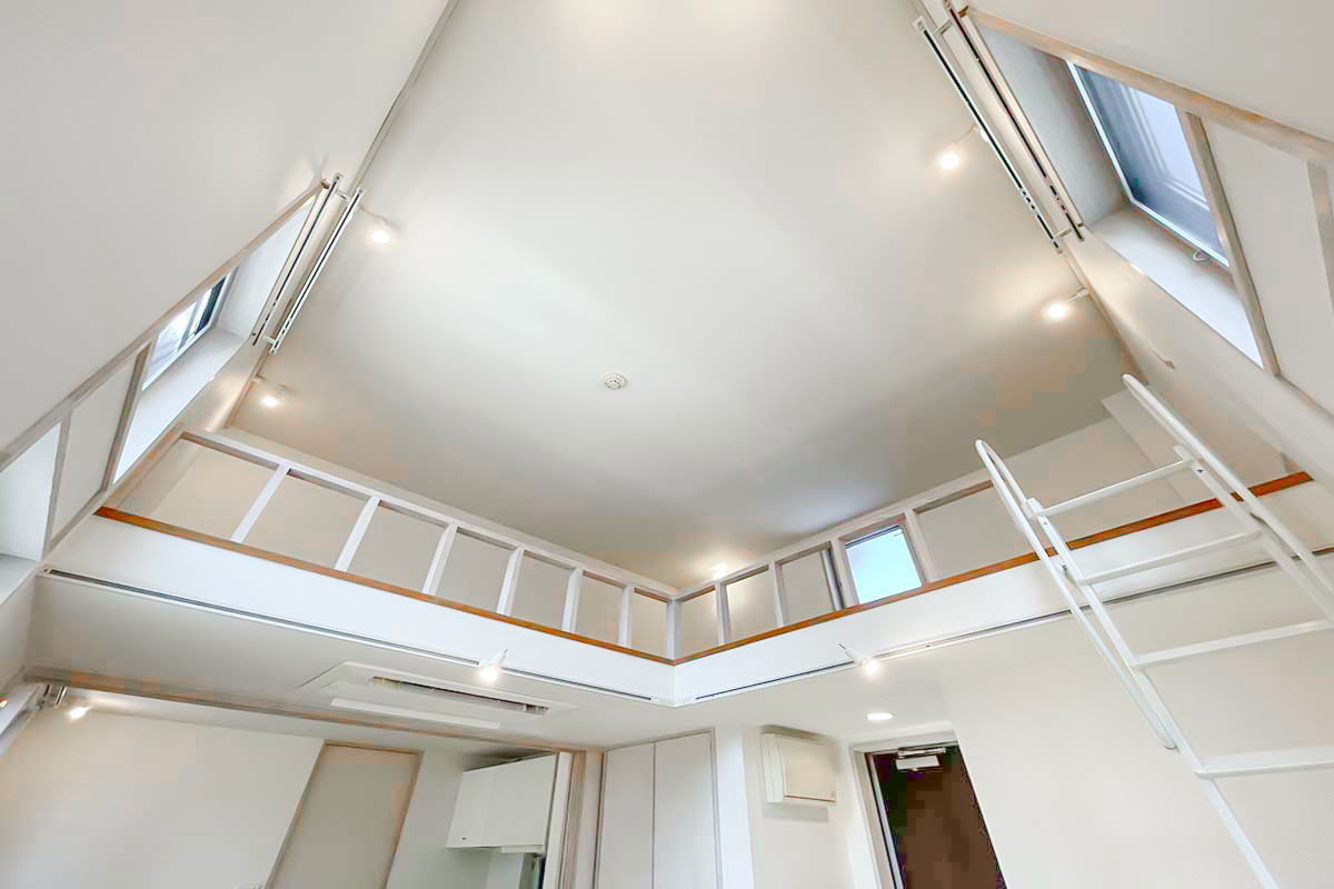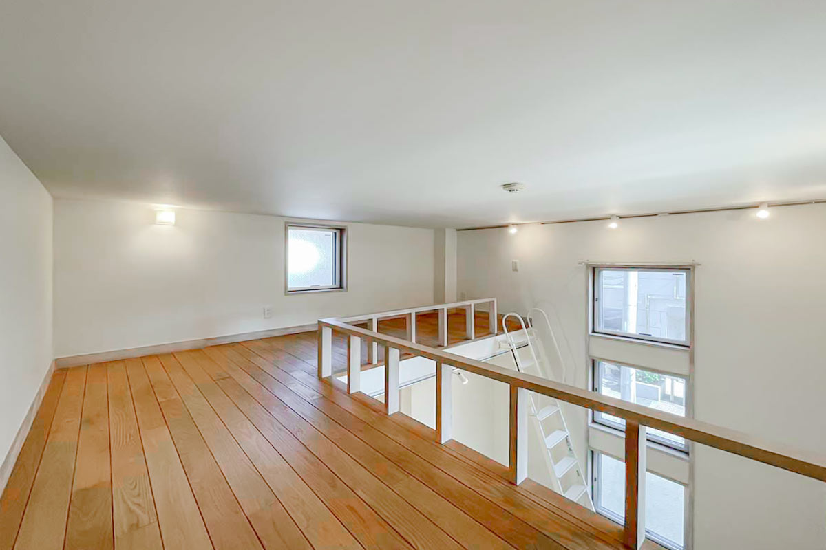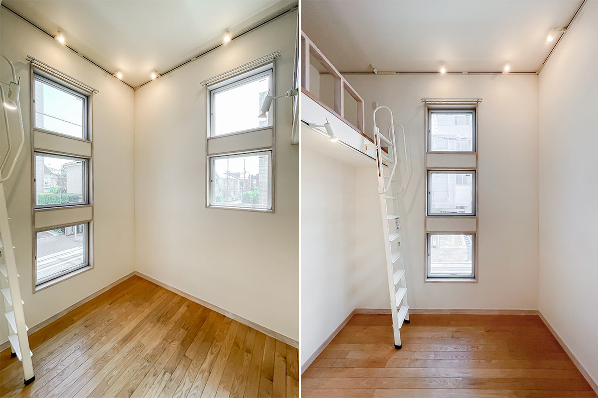 ロフトは4.3帖。天井高は約100cmほどですが、吹き抜けがすぐ横なので圧迫感を感じないロフトです。