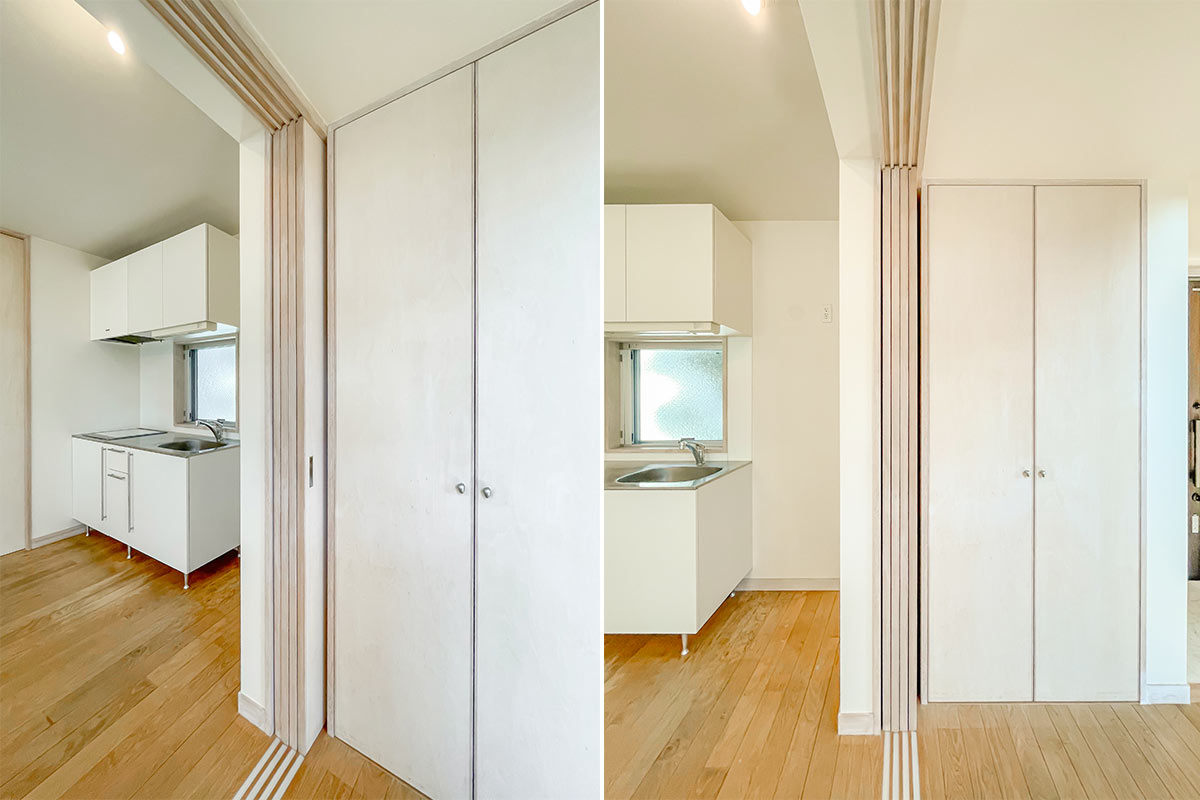 DK⇔洋室の扉は壁面に収められるため、日中は特にワンルーム使いがおすすめです。