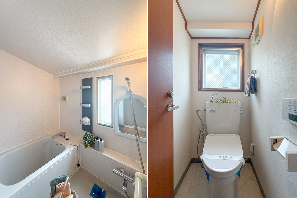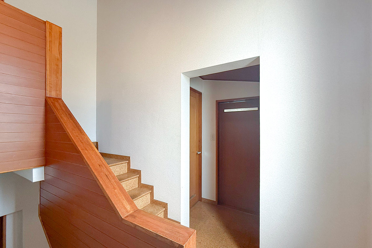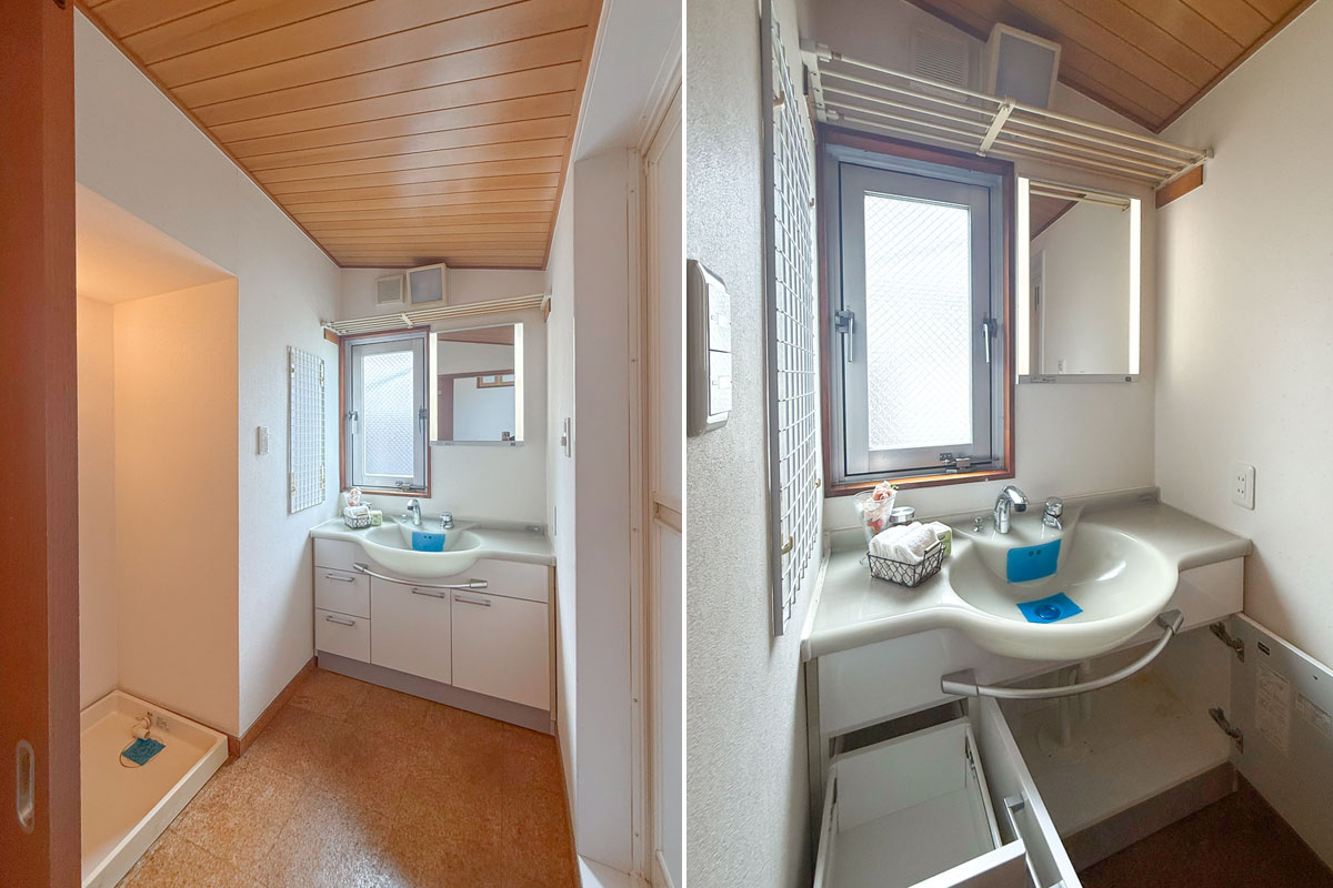 バスルームや洗面室の水回りは間の中2階の位置にまとまっています。