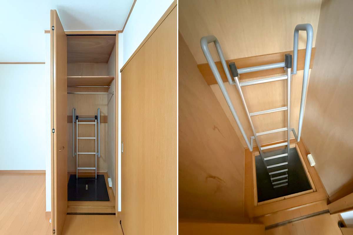 こちらのお部屋に付いているクローゼットを開けてみると、中にハシゴ付き。