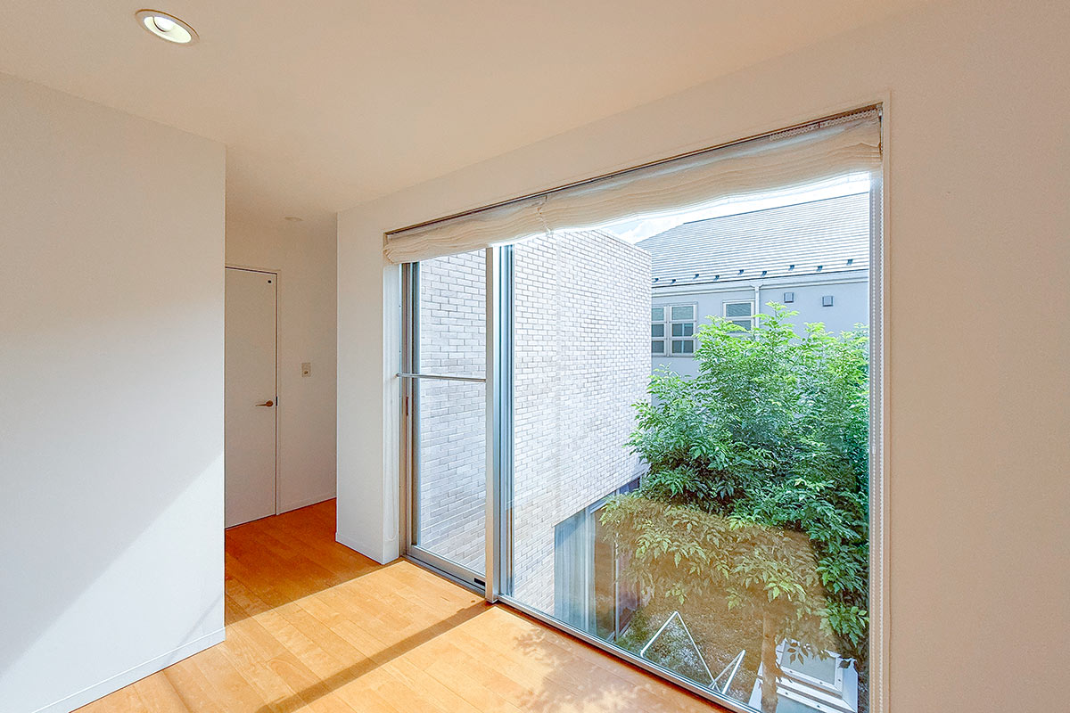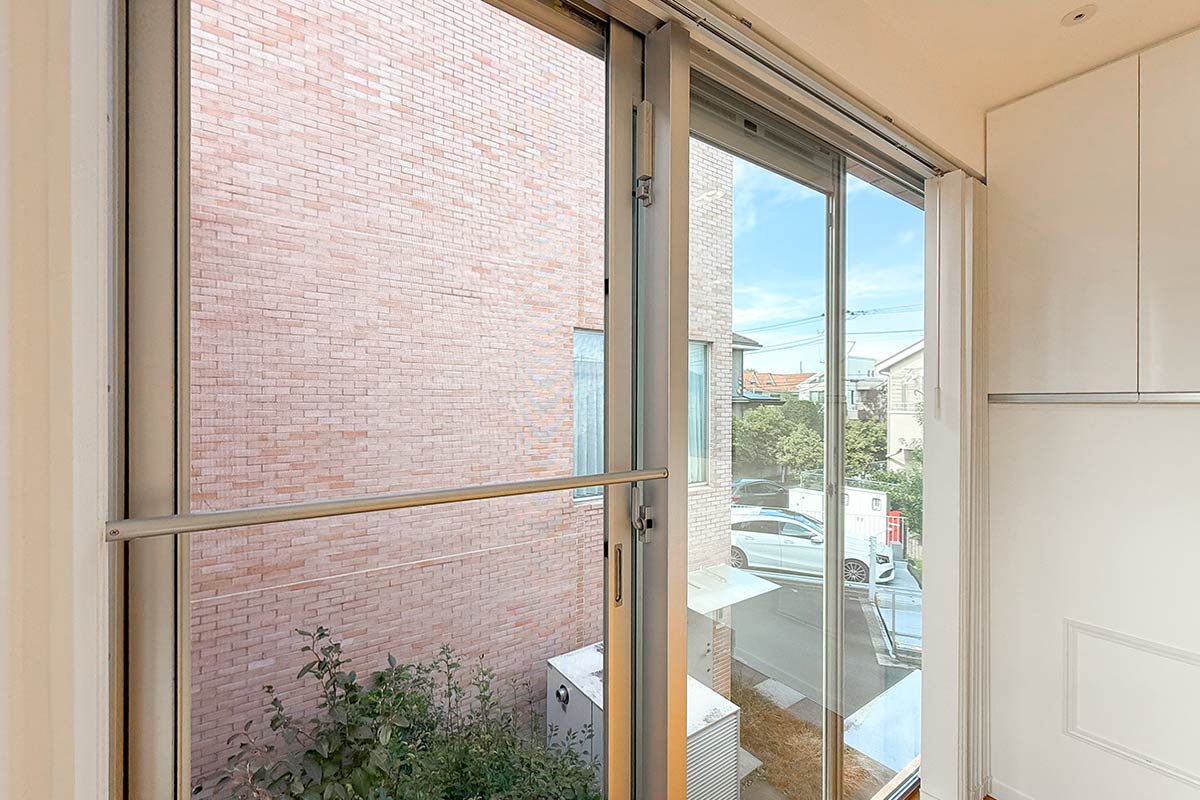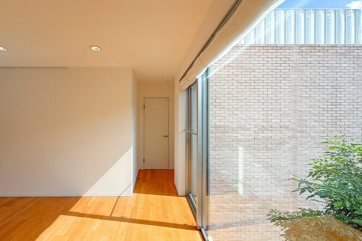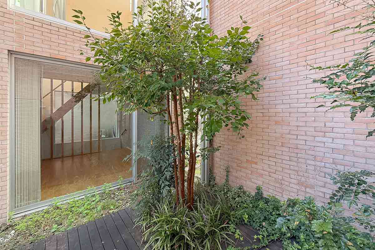 どんな部屋の構造になっているのか想像をかき立てられるその外観は、柔らかな色合いのレンガの質感も手伝って周りの風景とも馴染んでいます。