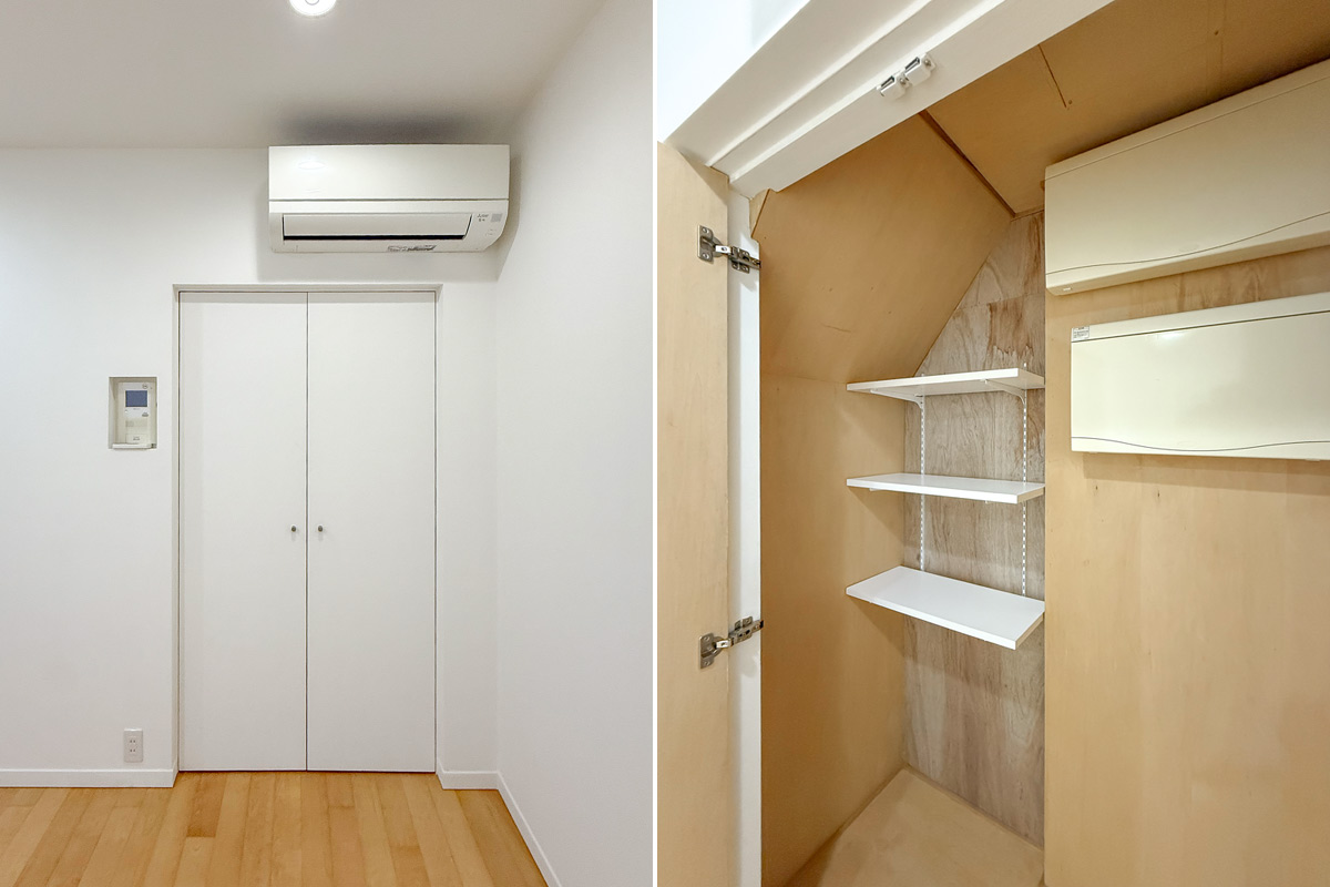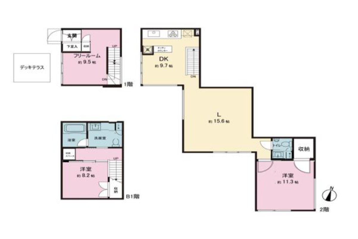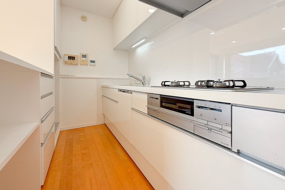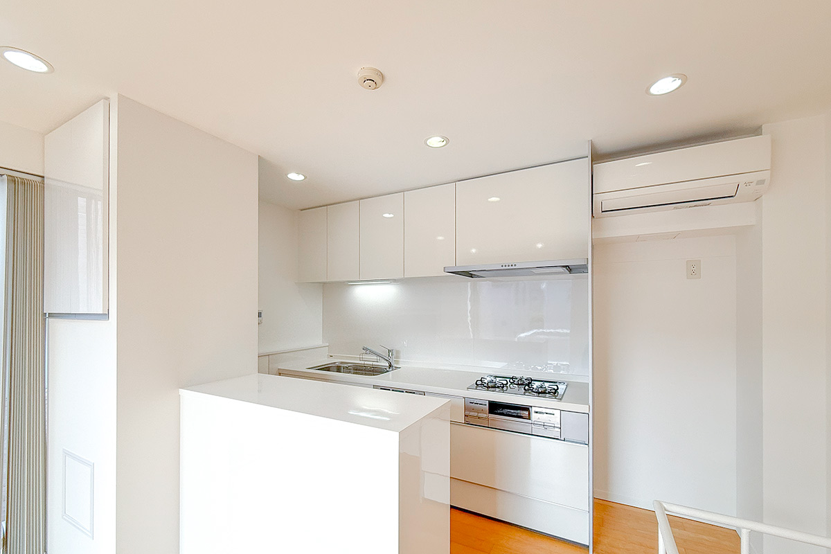 エアコン、B.T別室、モニター付ドアホン、独立洗面化粧台、室内洗濯機置場、専用庭、温水洗浄便座、追焚機能、浴室乾燥機、カウンターキッチン、システムキッチン、収納スペース、宅配ボックス、敷地内ごみ置場、メゾネット、デザイナーズ、最上階、角部屋、駐車場、駐輪場