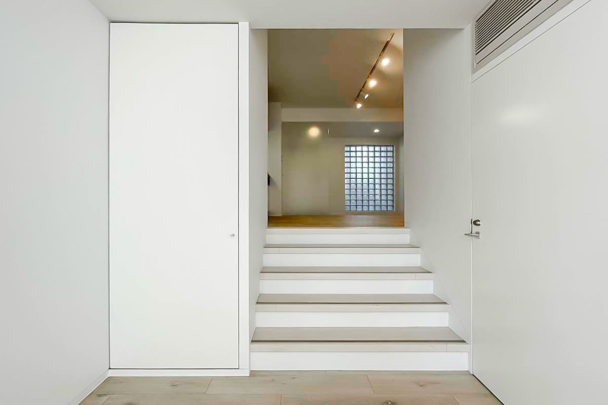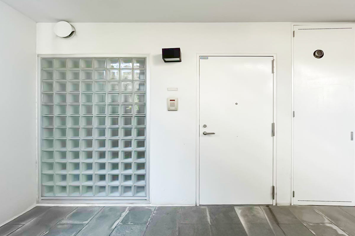 住宅地に佇むシンプルかつ大胆に大きな窓が並ぶ外観が特徴的。総住戸10戸の小規模なデザイナーズマンションです。