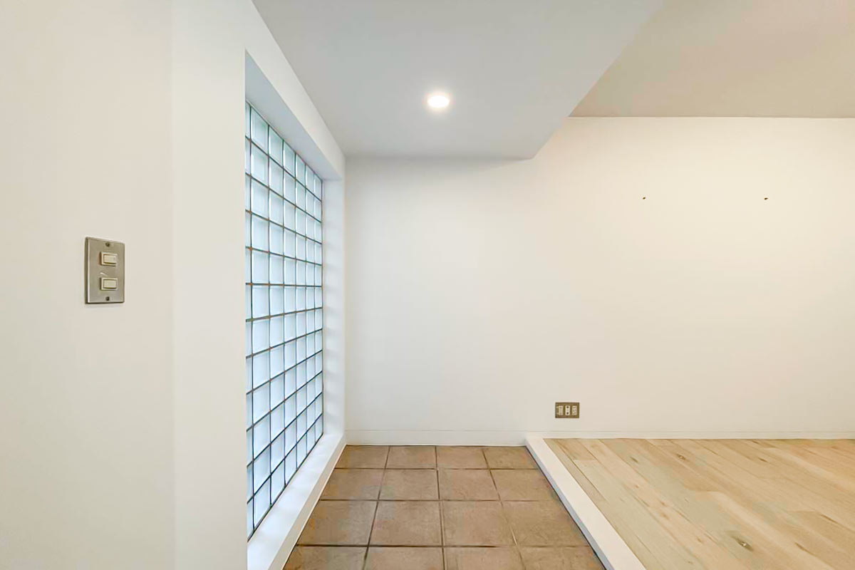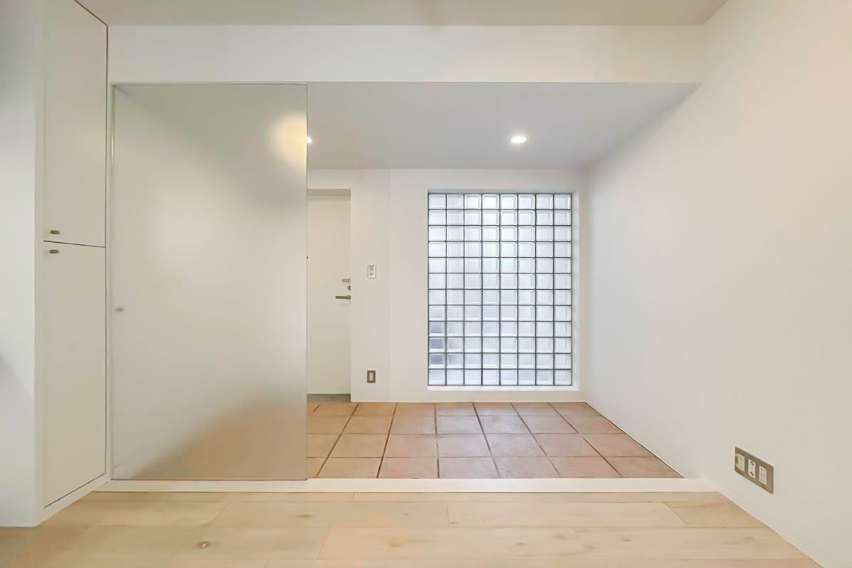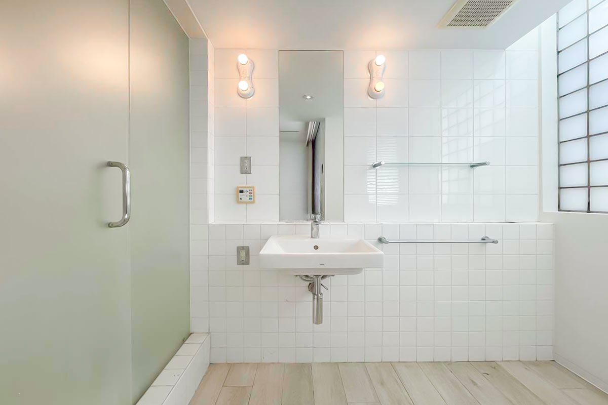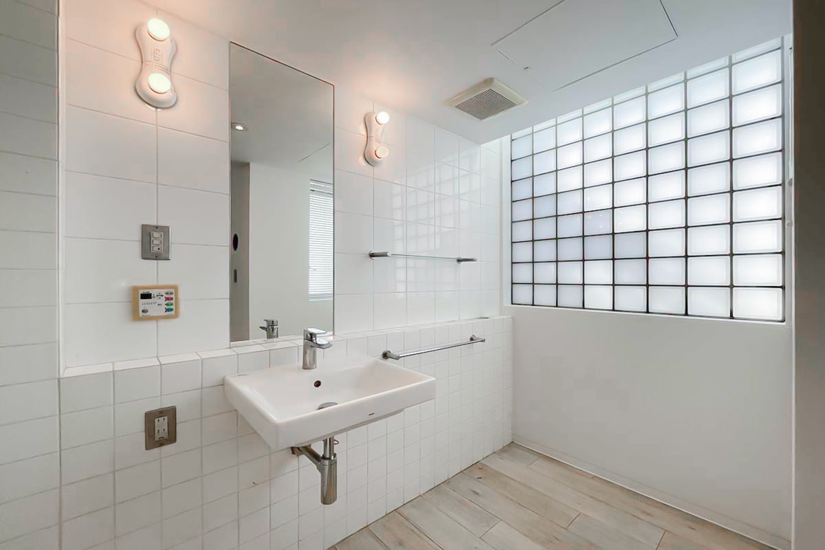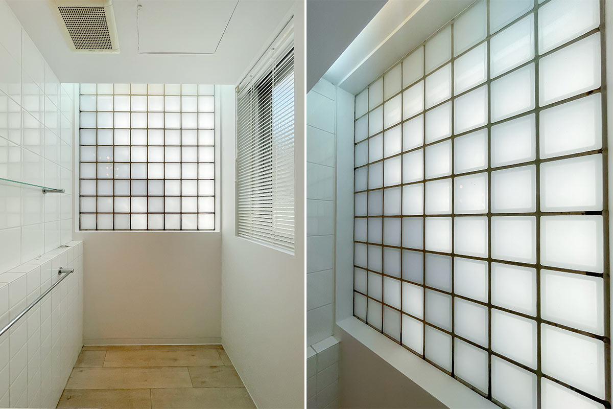 ガラスブロックや水栓の形などディテールも凝って素敵なお部屋です。