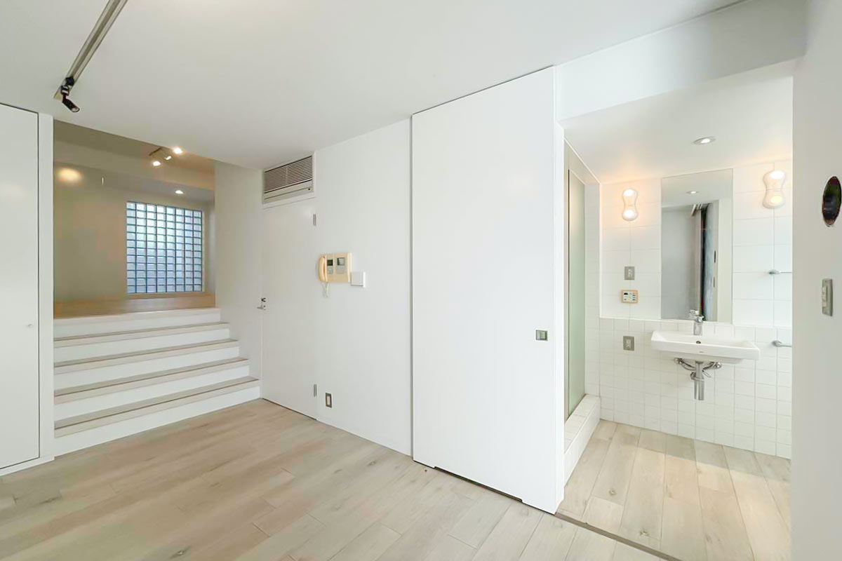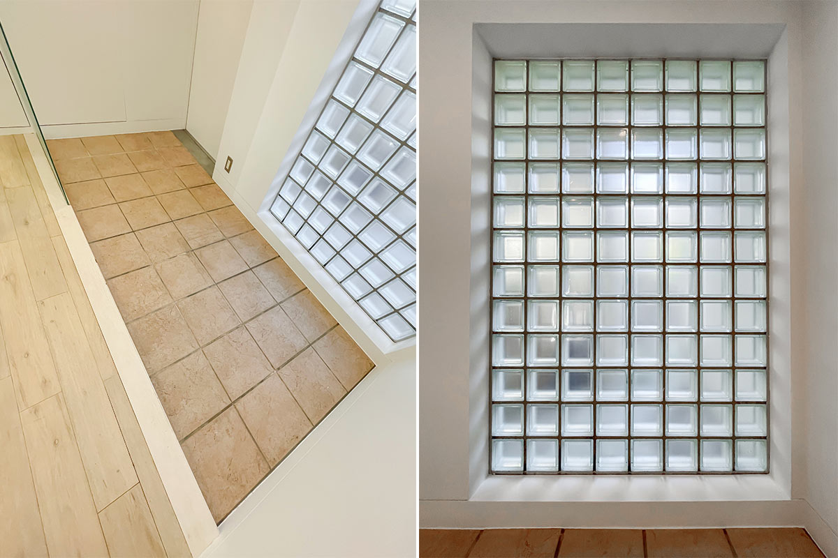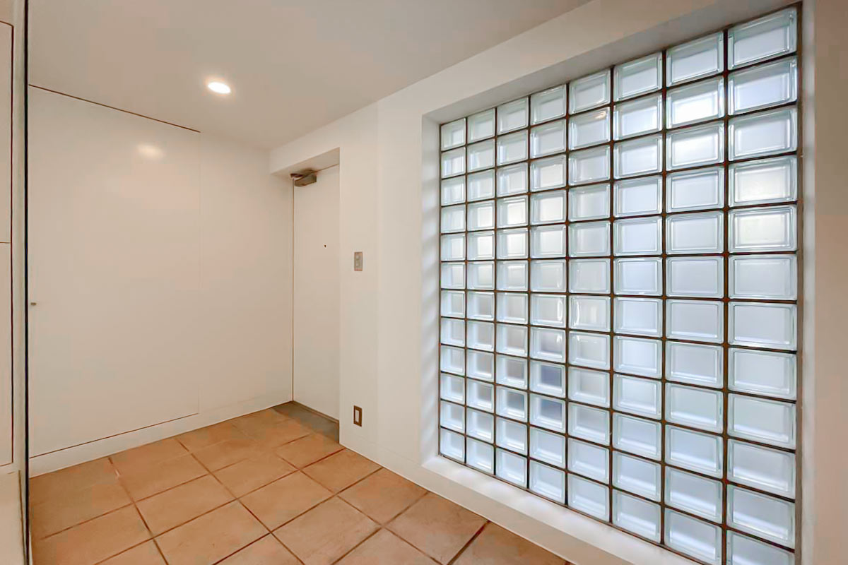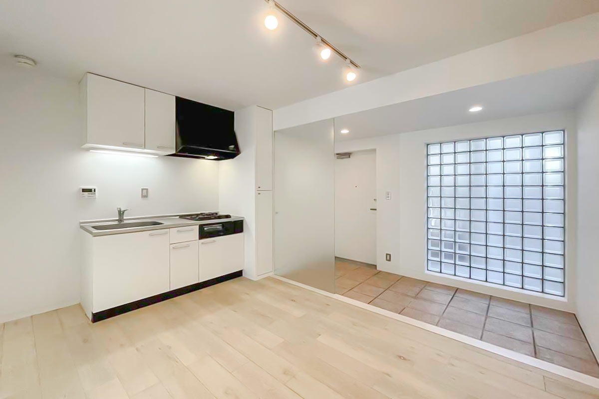 ガラスブロックや水栓の形などディテールも凝って素敵なお部屋です。