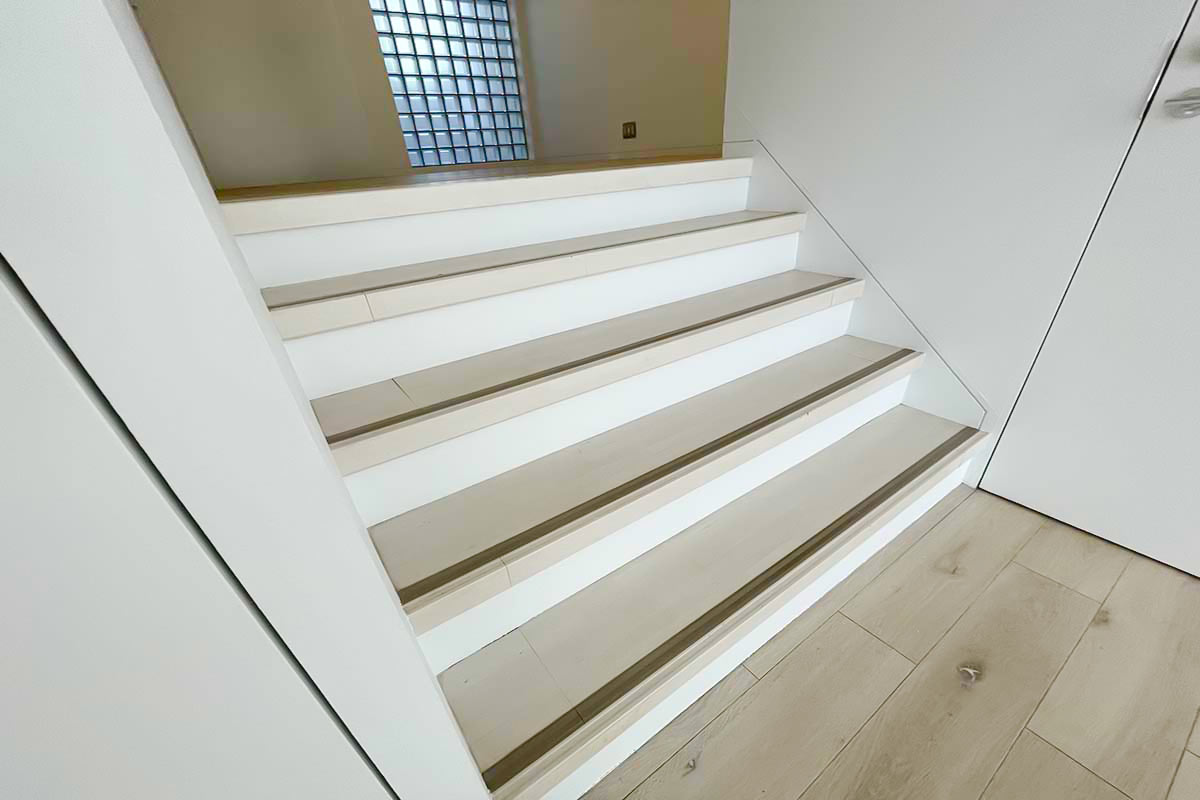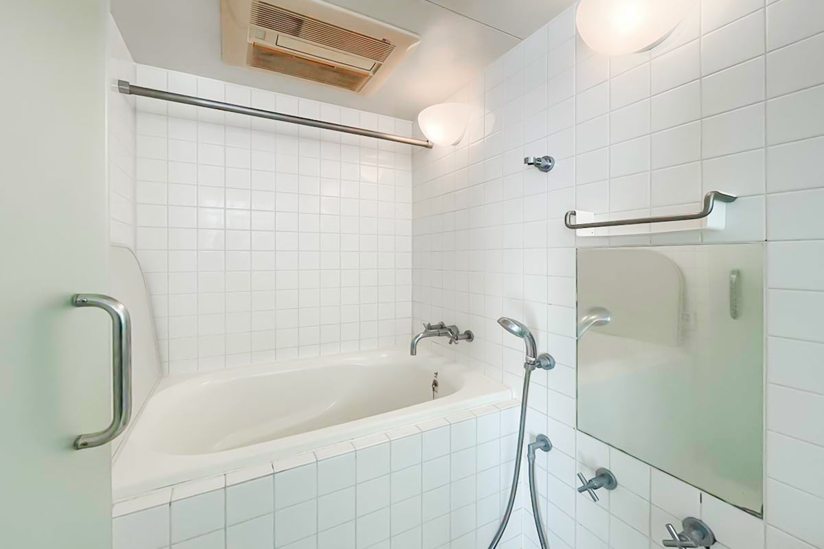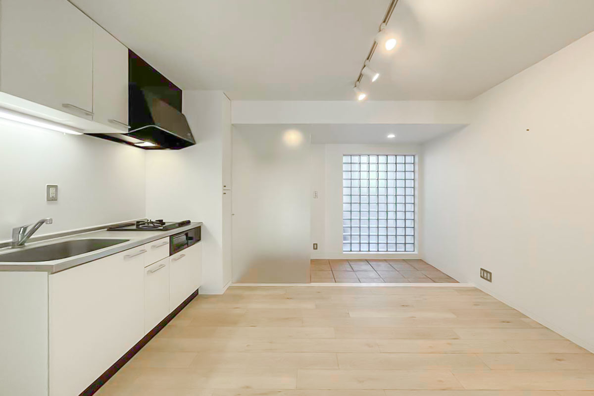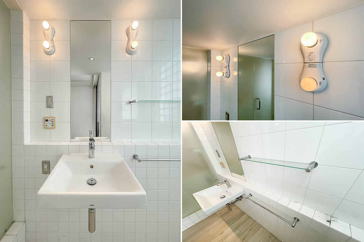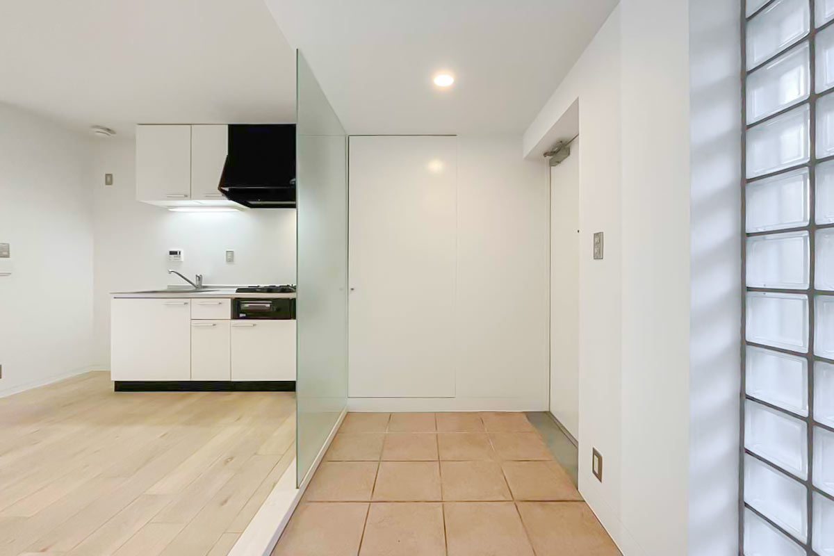 ガラスブロックや水栓の形などディテールも凝って素敵なお部屋です。