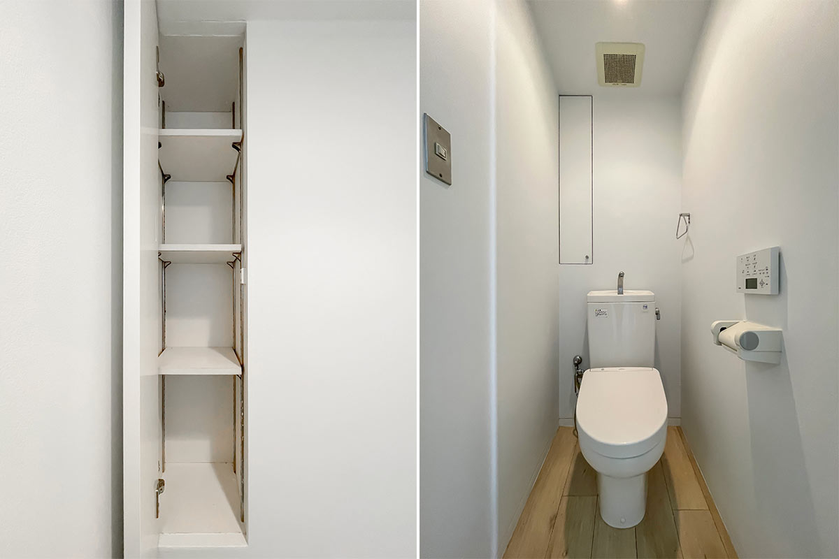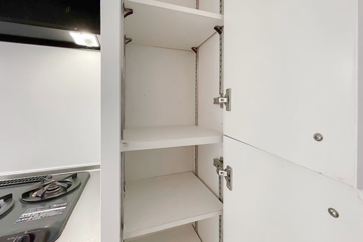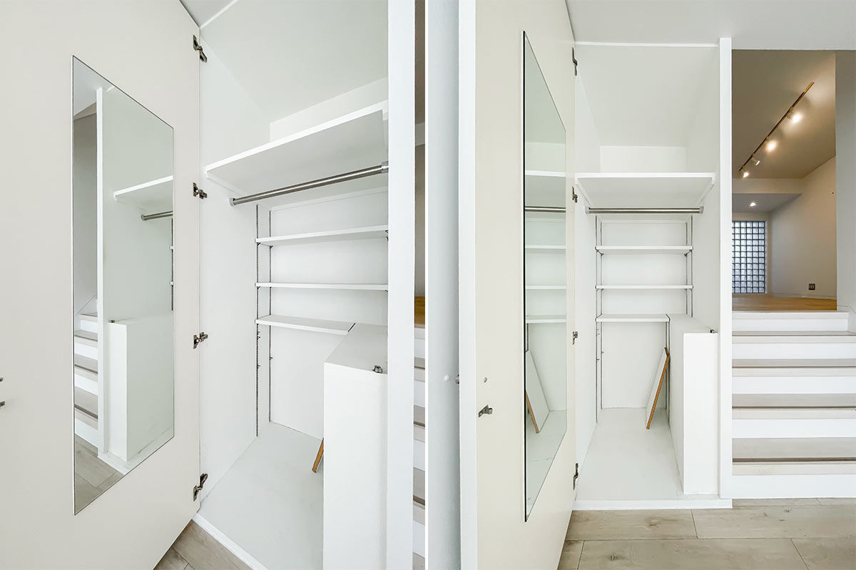 部屋全体が白く統一された内装なので、初見では見逃してしまいそうなのですが、収納がとっても豊富。