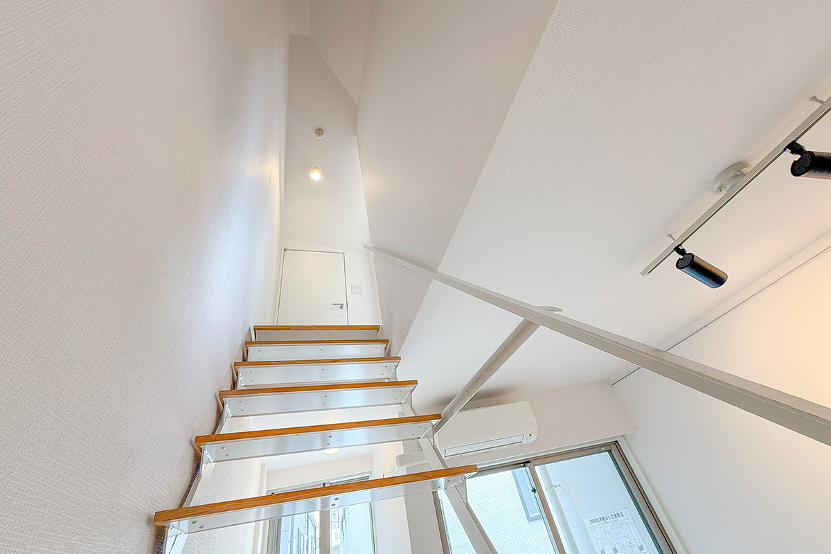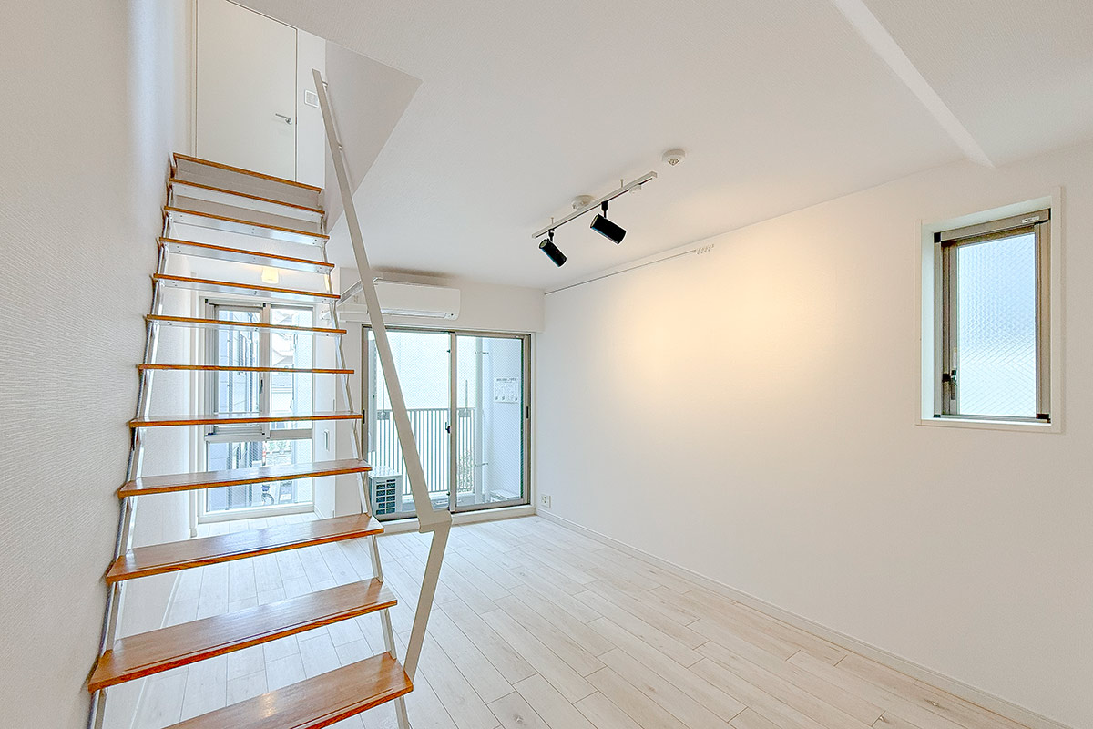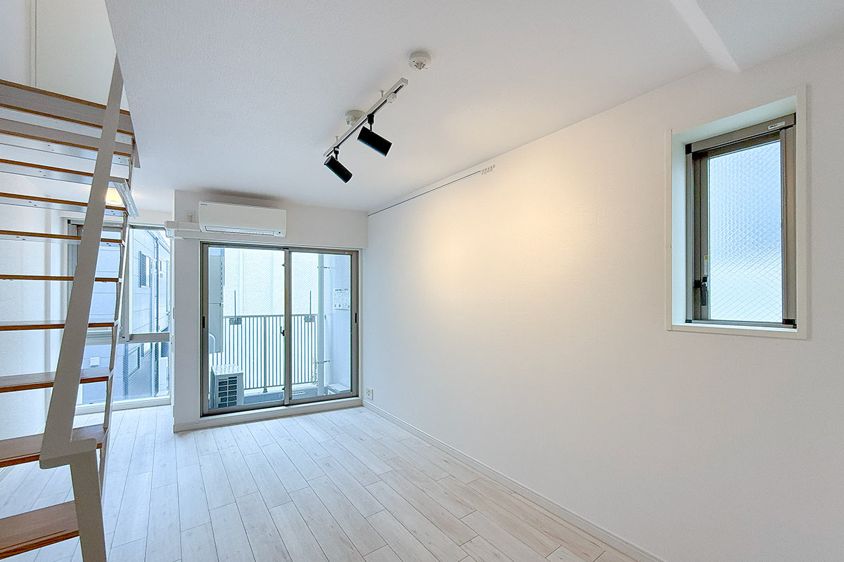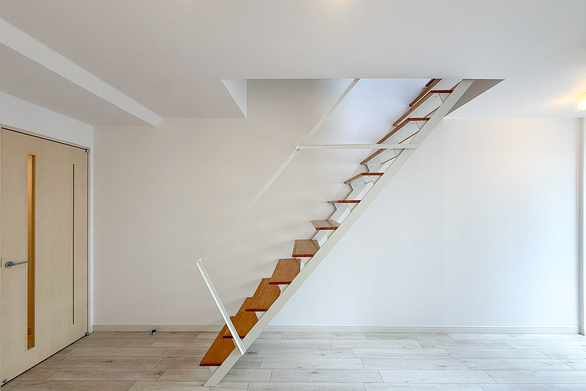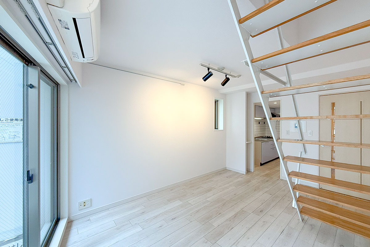 募集中のお部屋は2階の角部屋、約10帖のリビングと約6.9帖の洋室からなるメゾネットタイプ。