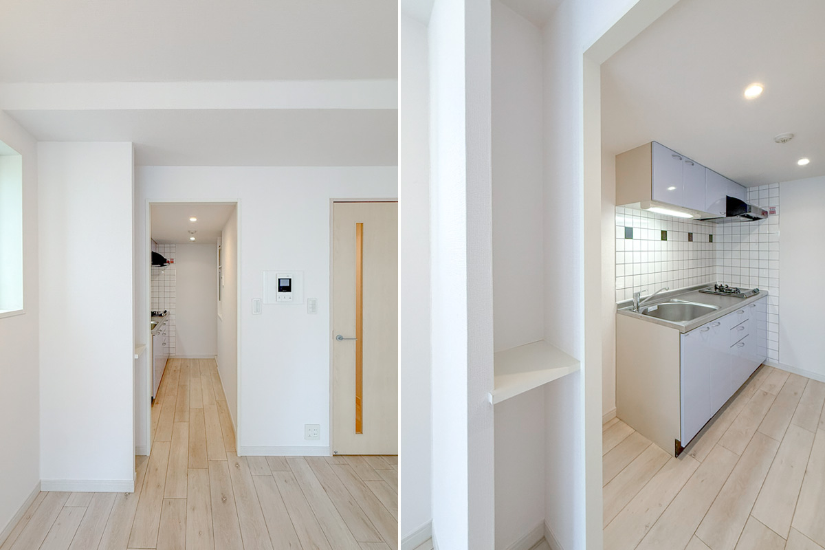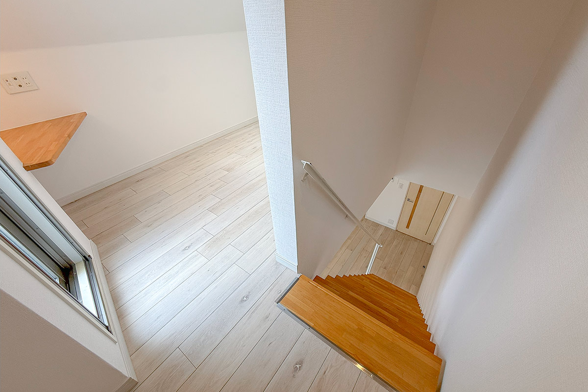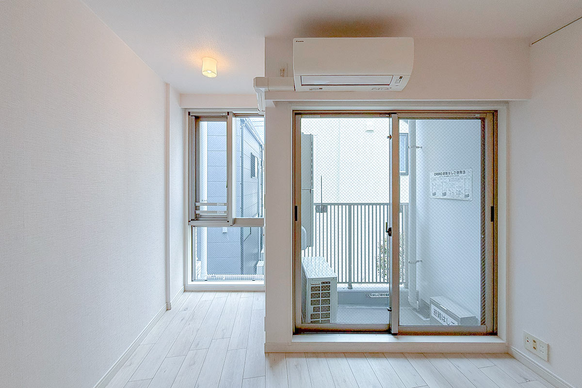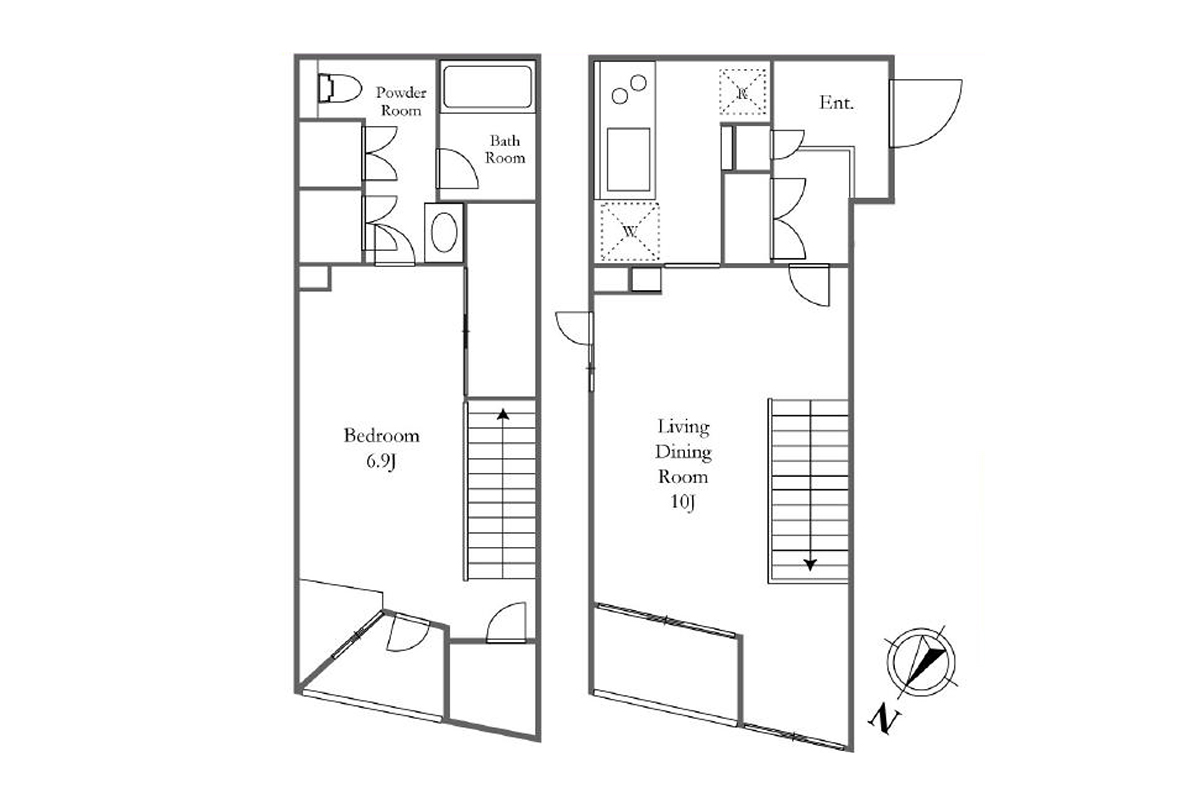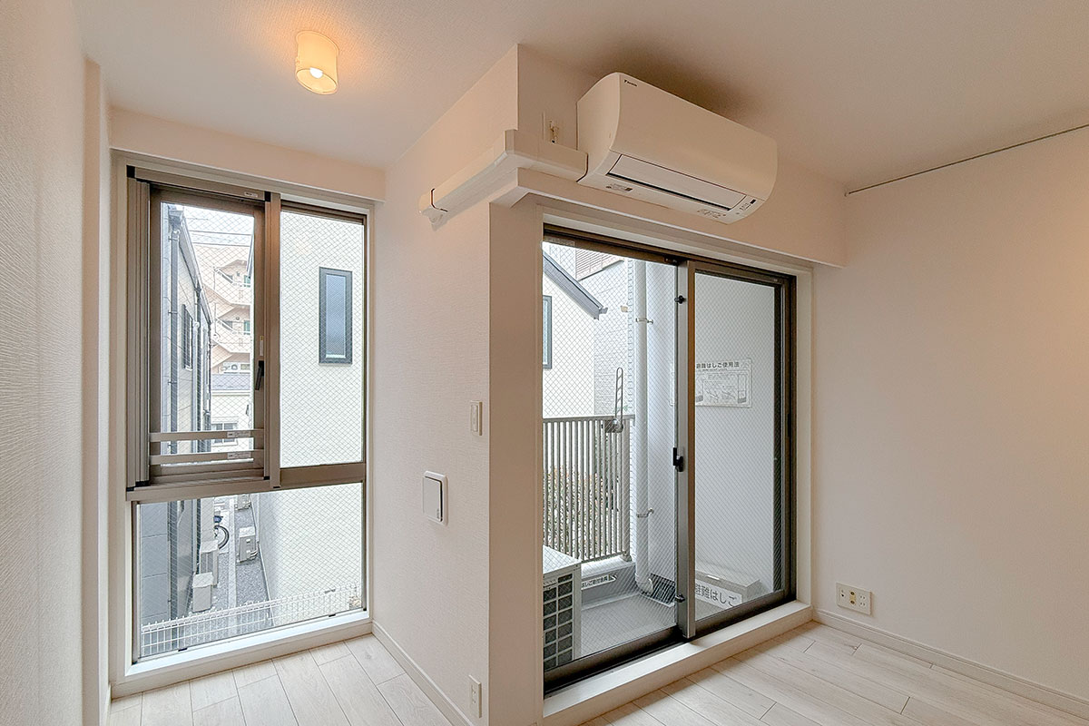 募集中のお部屋は2階の角部屋、約10帖のリビングと約6.9帖の洋室からなるメゾネットタイプ。