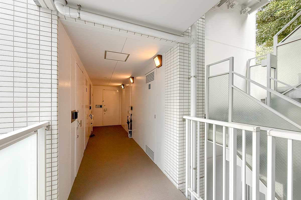 ご紹介するマンションは淡島通りから裏道を入ったところにある、小綺麗なレジデンス。