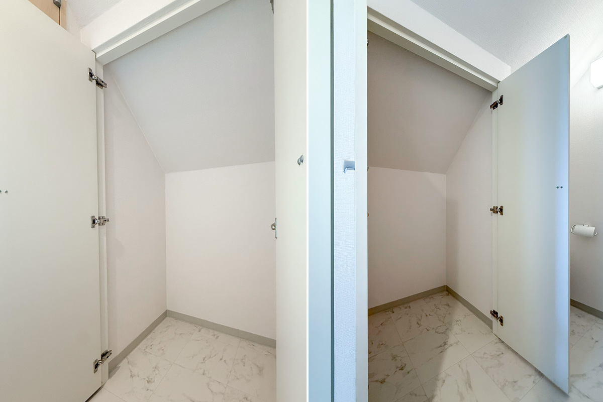 生活スペースほどではない物置きサイズなので、使用頻度の少ない季節ものなどの収納場所として活躍してくれそうです。