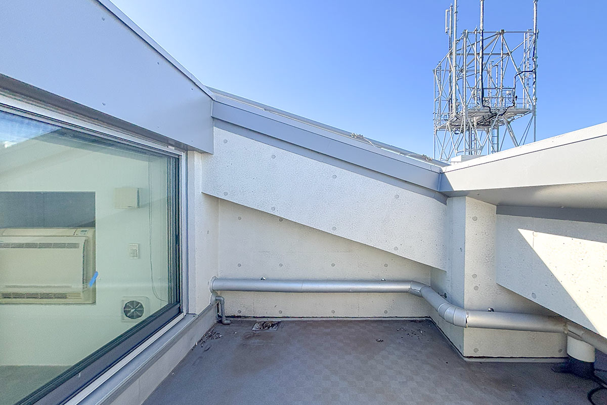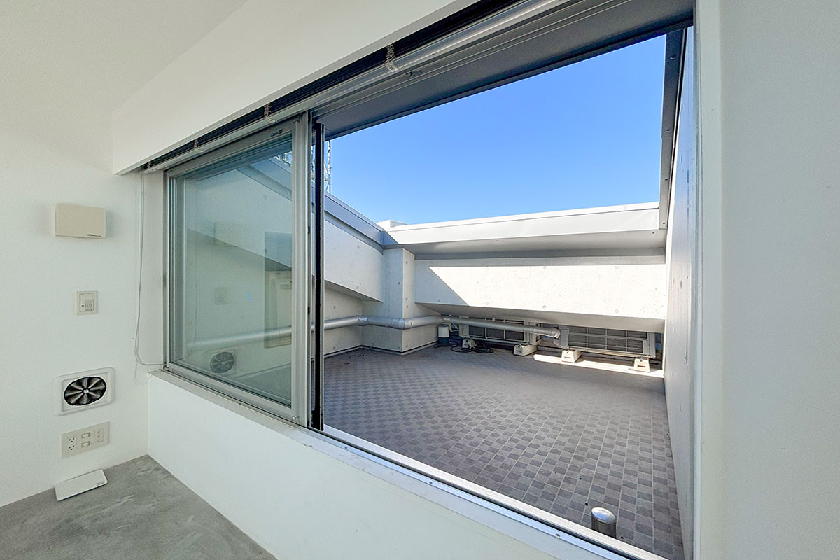 大通りと反対側に設けられたバルコニースペースは、頭上に空が広がり、ほっと休息できる空間になりそう。