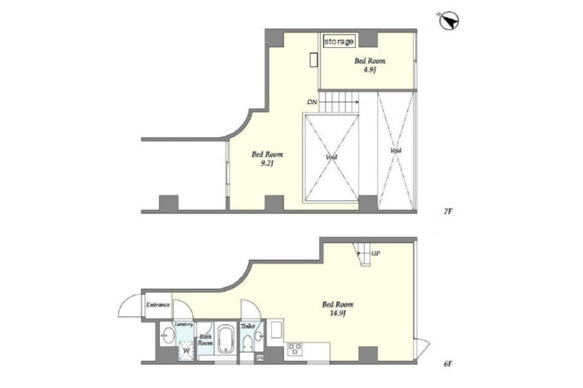 お部屋は最上階の角部屋、6-7階のメゾネット。