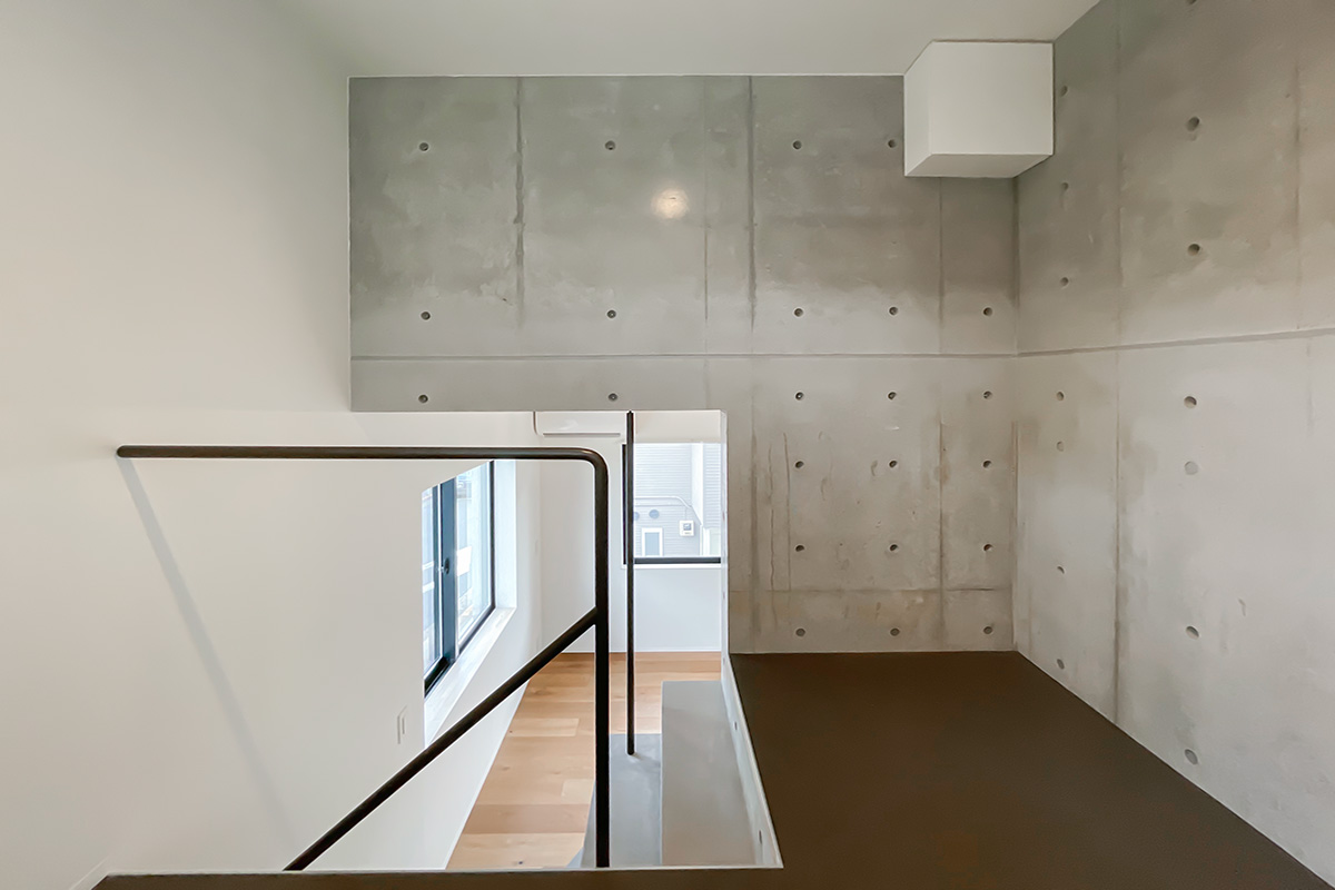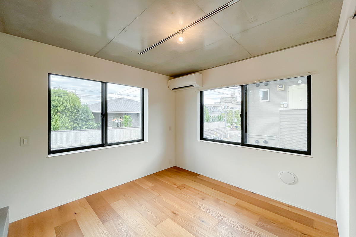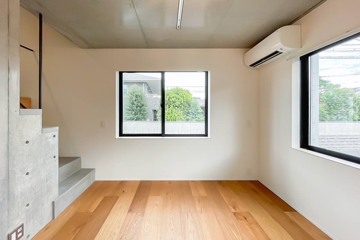 それぞれの空間は5~6帖ほどでしょうか。どの階も2面採光で、窮屈さは感じない印象です。