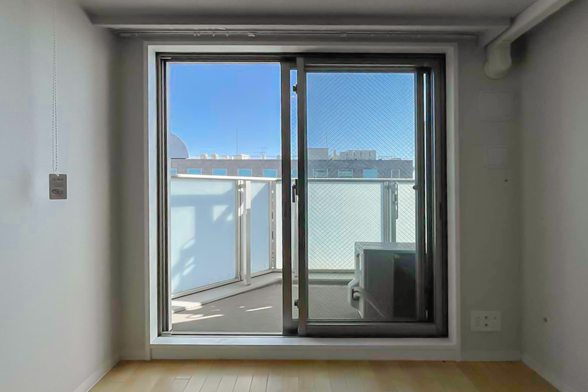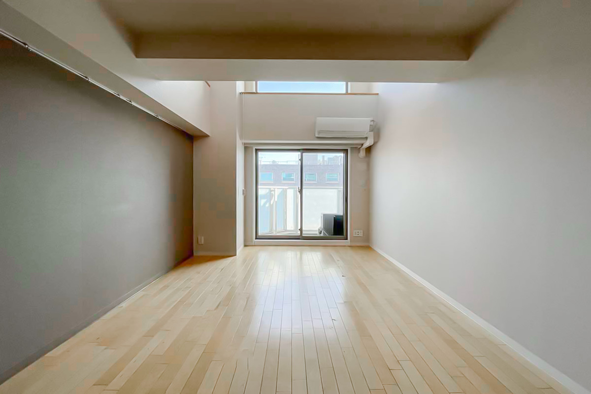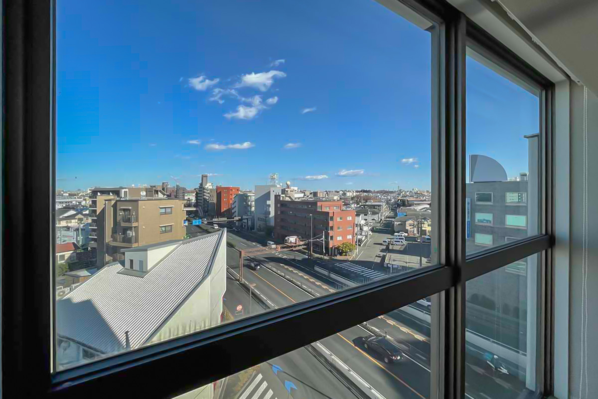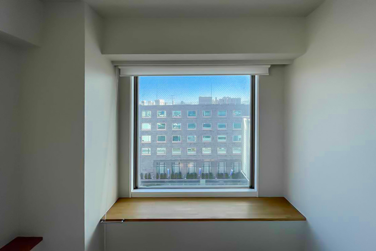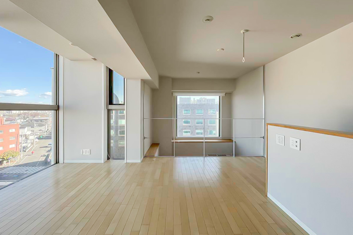 7階の洋室は11.2帖の広さがあり、大きな窓から青い空を臨みます。