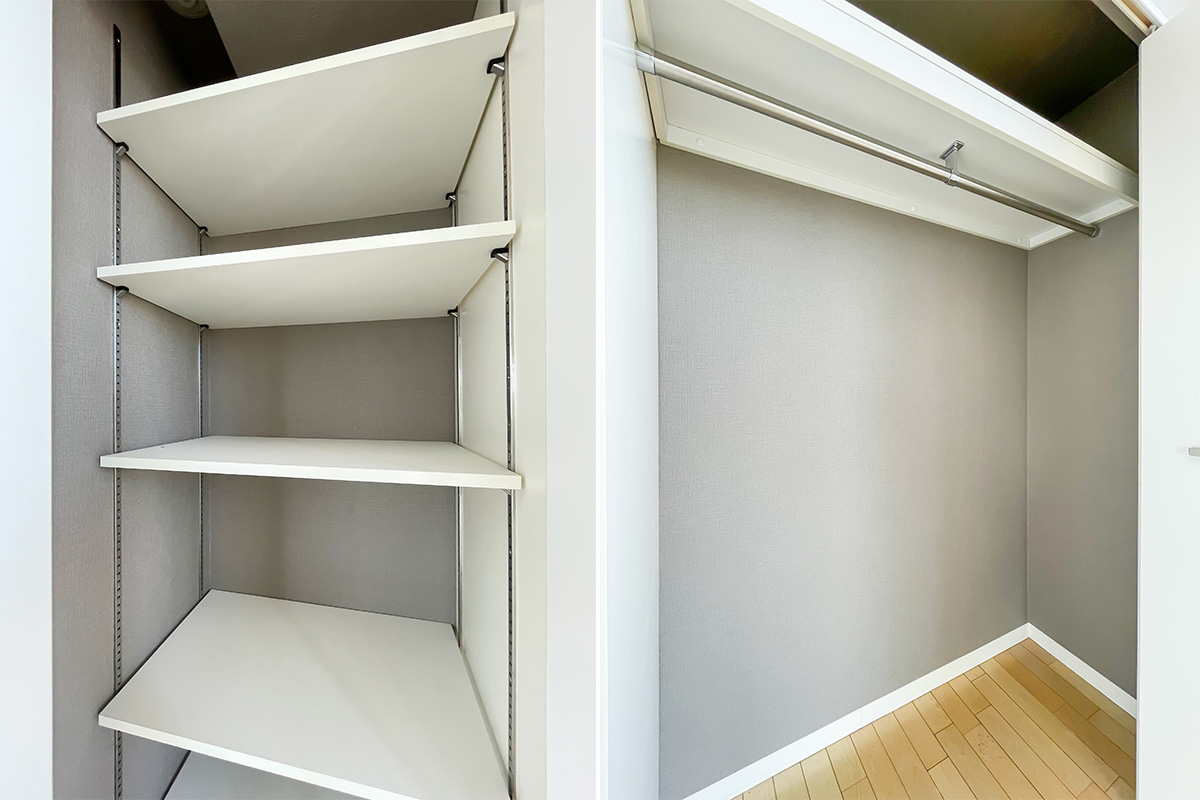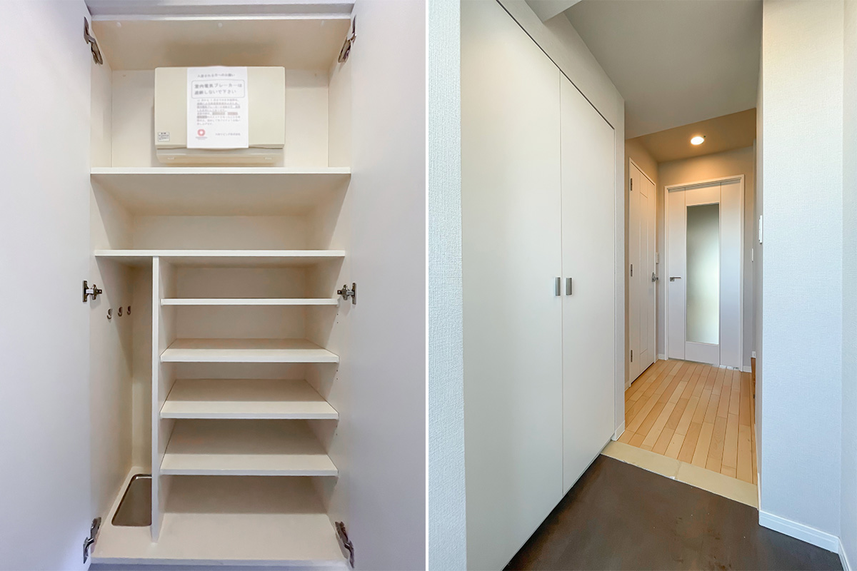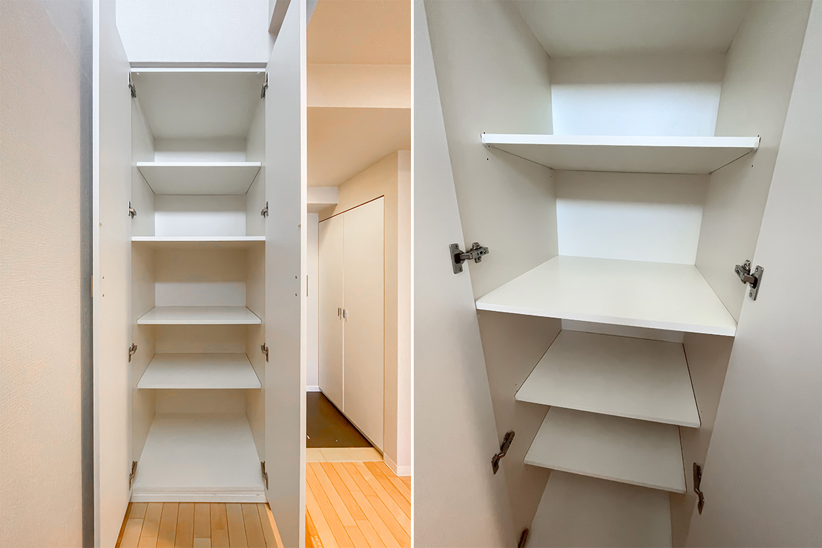 奥行の深さを生かして、キャリーケースなど大きなものの収納に役立ってくれそうで、実用性が嬉しい収納です。