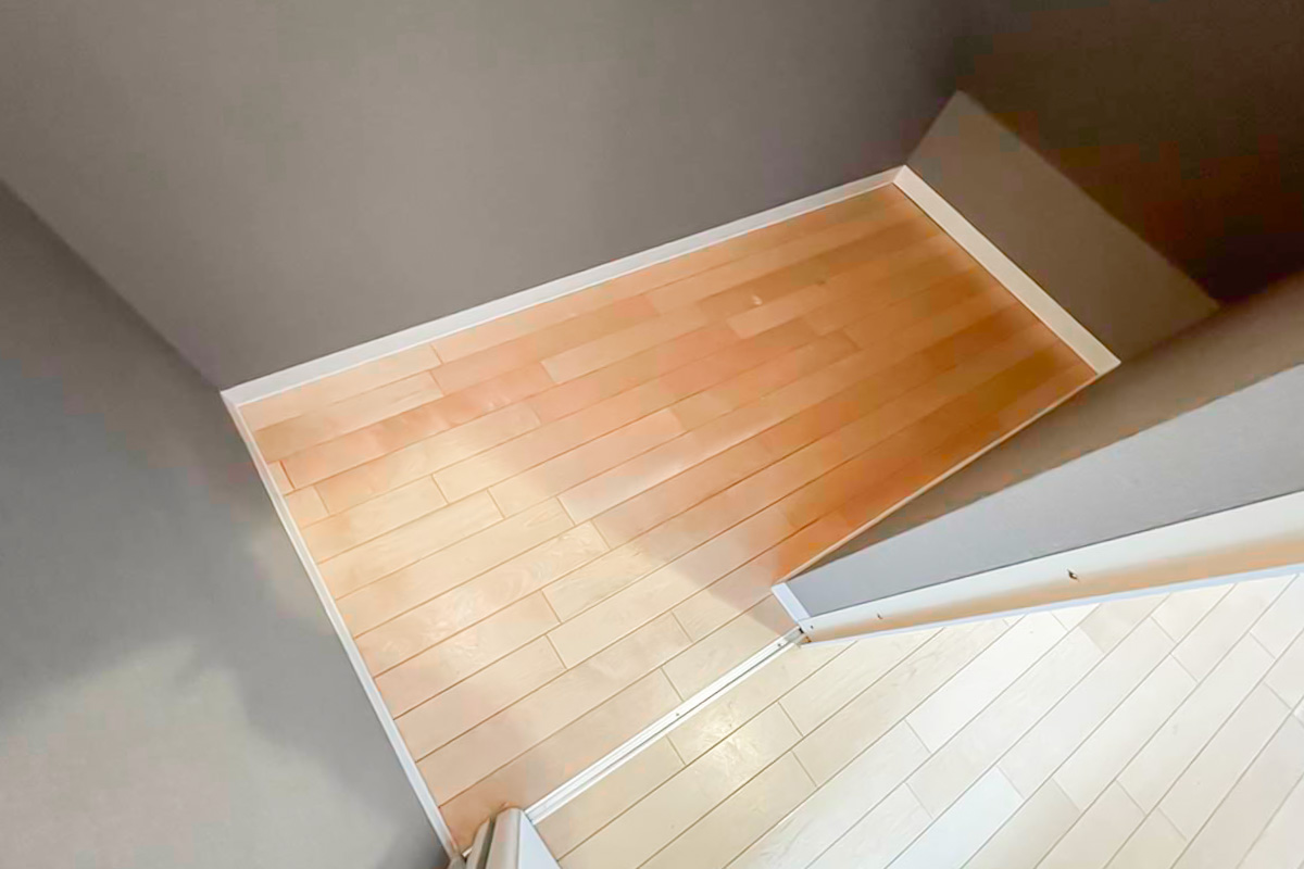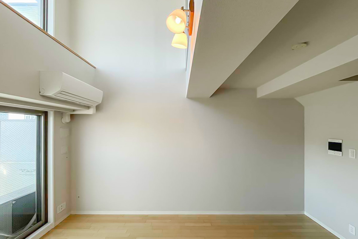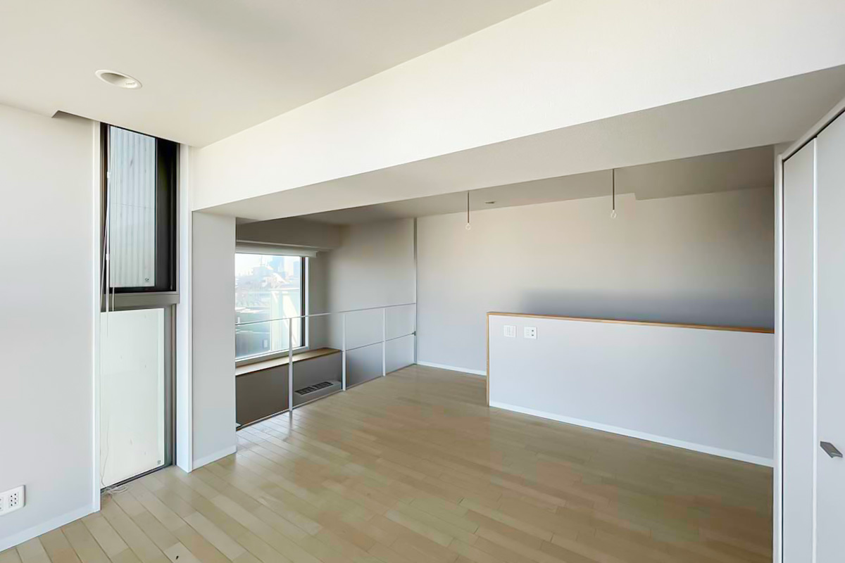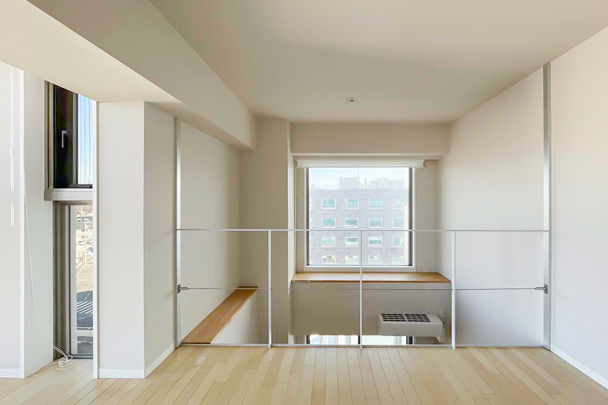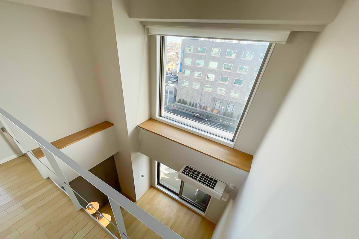 高所恐怖症の方には正直おすすめできませんが、窓際にベッドを置いて朝陽を浴びて起きましょう!吹き抜けに面した箇所にデスクなどを置いても良さそうです。