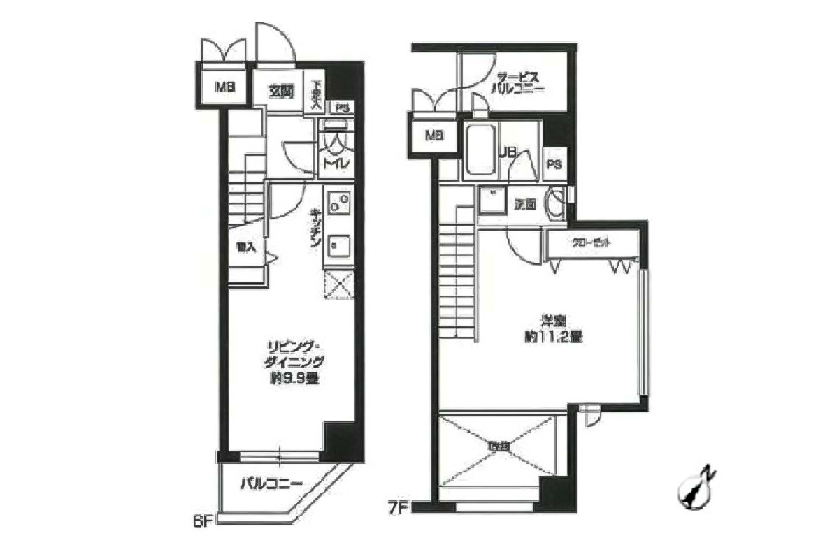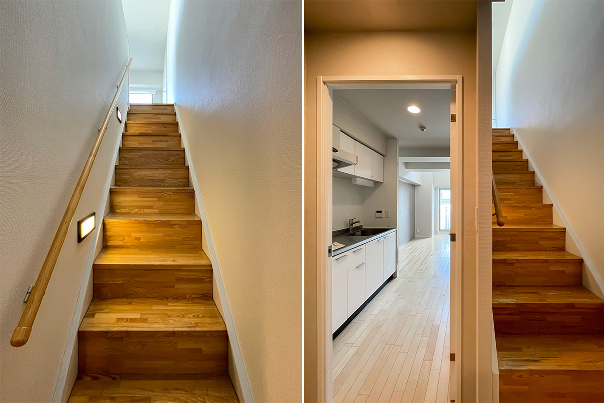 上階を広く使いたい場合は、下階にベッドとダイニングテーブルというものありでしょうか。
