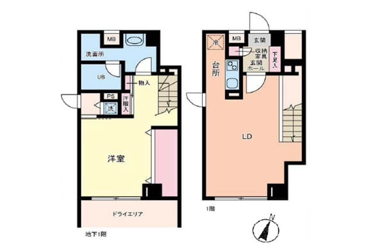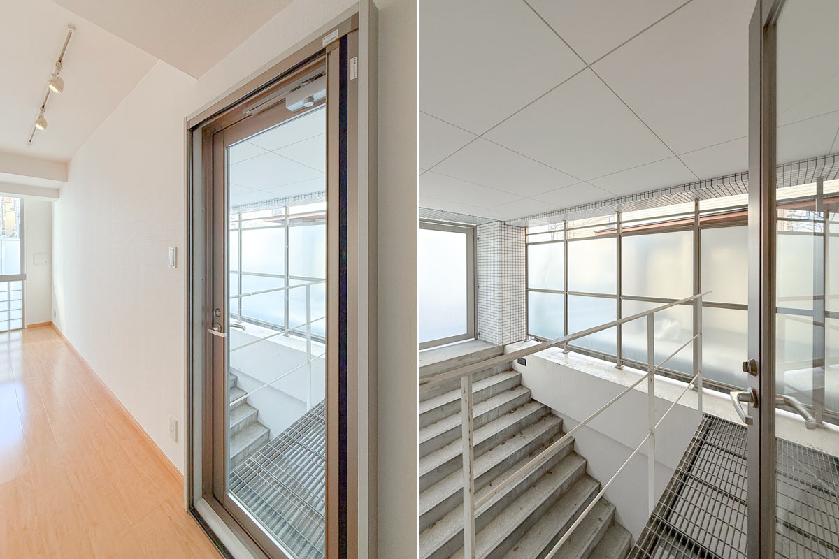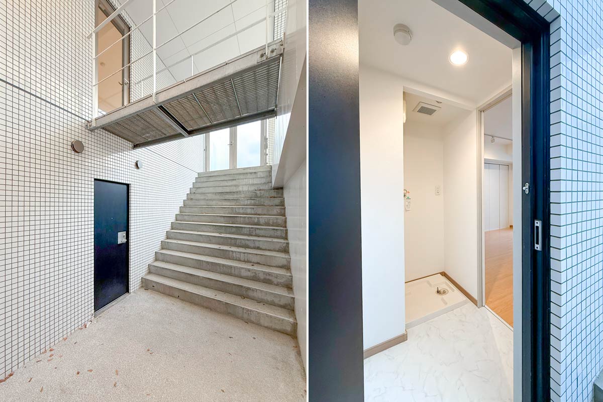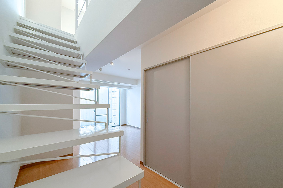 こちらのお部屋は下の階にも玄関があって、上下階どちらからも出入りができるようです。